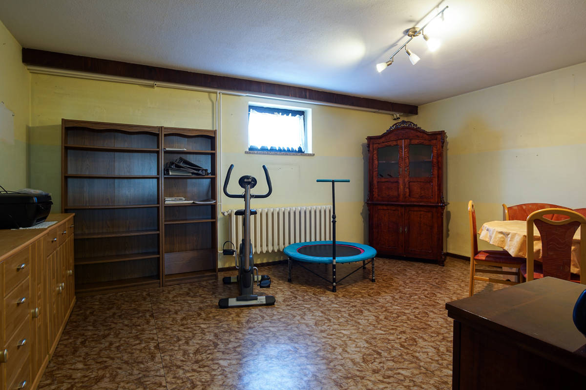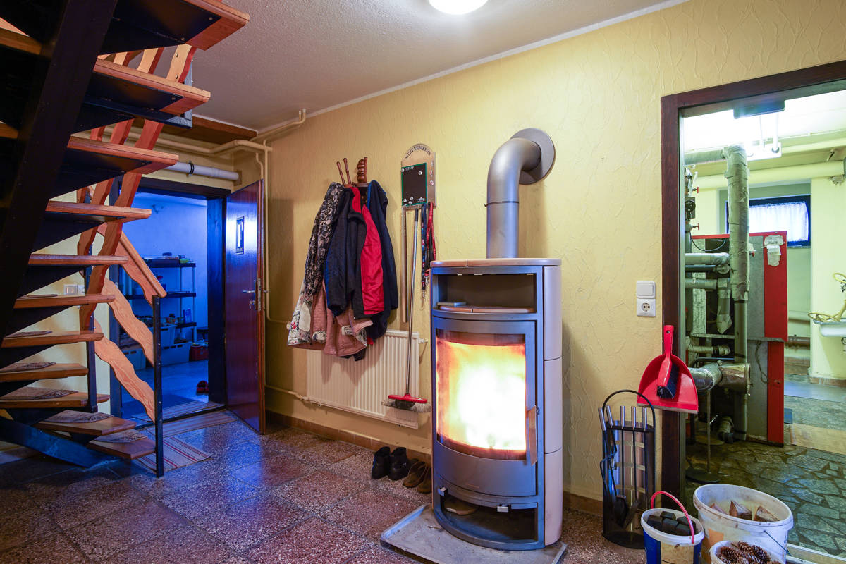 Erleben Sie in diesem Haus das angenehme Wohngefühl einer durchdachten Raumaufteilung . Die große Wohnküche bietet viel Platz zum Kochen und sitzen . Die Einbauküche aus 2011 ist im Kaufpreis enthalten und modern ausgestattet. Besonders großzügig ist das Wohn- und Esszimmer des Hauses welches wie auch der Flur über einen schönen Parkettboden verfügt. Im Dachgeschoss befinden sich, zwei weitere Zimmer und eine zusätzliches kleines Bad mit Waschbecken und WC. Also zusätzlicher Komfort und Platz ist hier auch im Obergeschoss gegeben. Dieses Haus ist außerdem vollständig unterkellert und bietet dadurch zusätzlichen Stauraum und Platz für ein kreatives Hobby. Im Keller befinden sich zwei Zimmer sowie der Wasch- und Trockenraum und der Heizraum. Für angenehme Wärme in der kalten Jahreszeit sorgt die effiziente Zentralheizung, die mit Öl befeuert wird, sowie ein zusätzlicher Kaminofen im offenen Flurbereich des Kellers.