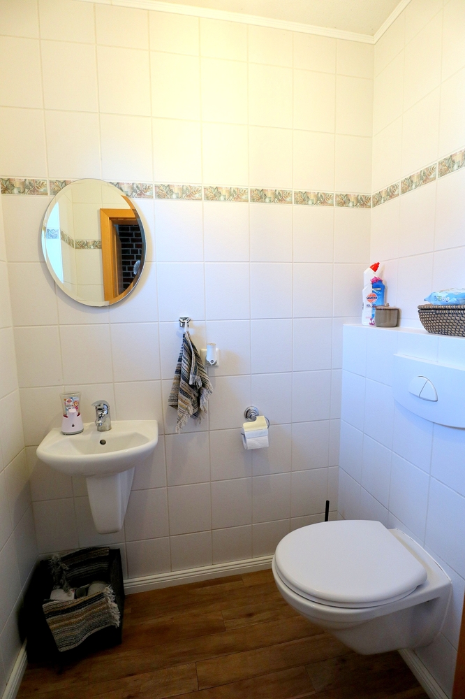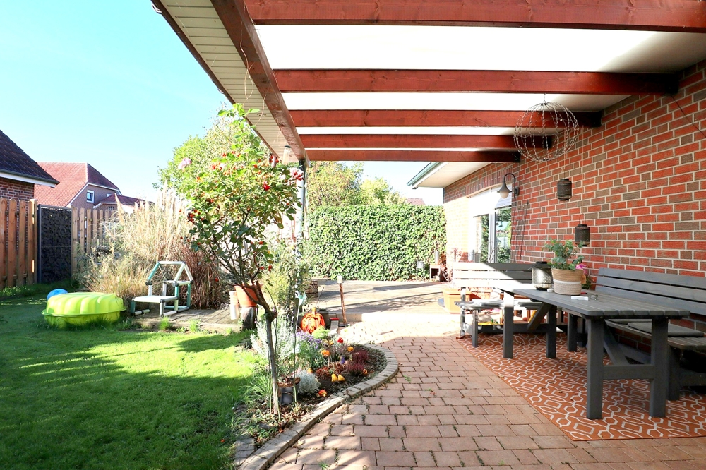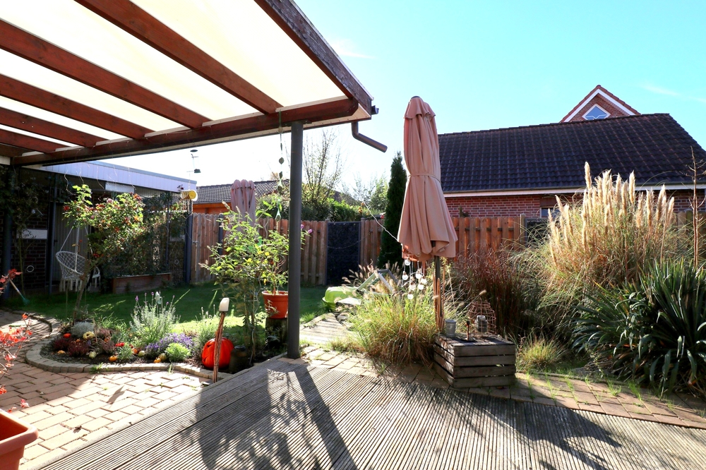 Dieses wunderschöne Einfamilienhaus befindet sich in einer zentralen, verkehrsberuhigten Siedlungslage in Ostrhauderfehn. Das Wohnhaus mit der Garage wurde 1999/2000 in Massivbauweise erreichtet und hat mit 4 Schlafzimmern und einem großen Bad ausreichend Platz für eine Familie. Ein großes Wohnzimmer, eine Wohnküche mit angeschlossenem Vorratsraum, die Gästetoilette , der Hauswirtschaftsraum (Hintereingang) sowie ein Schlafzimmer befinden sich im Erdgeschoss, 3 Schlafzimmer, der Heizungsraum und ein großes Bad mit Wanne und Dusche befinden sich im Obergeschoss. Direkt von der Küche oder vom Wohnzimmer betritt man eine überdachte Terrasse im nicht einsehbaren, pflegeleichten Garten. Die Heizung der Immobilie wurde noch nicht erneuert. An der Garage befindet sich ein großer Werkraum.