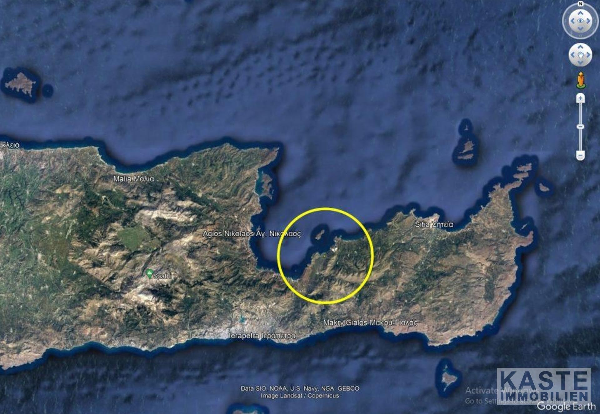 Alle Gebäude auf diesem Grundstück werden einen fantastischen, ununterbrochenen Panoramablick auf das Meer und die Insel haben. Das Grundstück befindet sich direkt oberhalb eines ruhigen Strandes in der Nähe des Dorfes Kavousi. Dieses schöne traditionelle Dorf ist 25 Autominuten von Agios Nikolaos oder 15 Minuten von Ierapetra entfernt. Die Aussicht auf das Meer, die Berge und die Insel ist einfach spektakulär. Es gibt einen Straßenzugang und Wasser- und Stromleitungen sind in der Nähe.