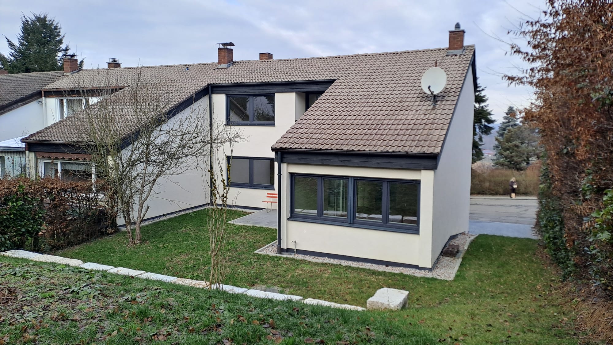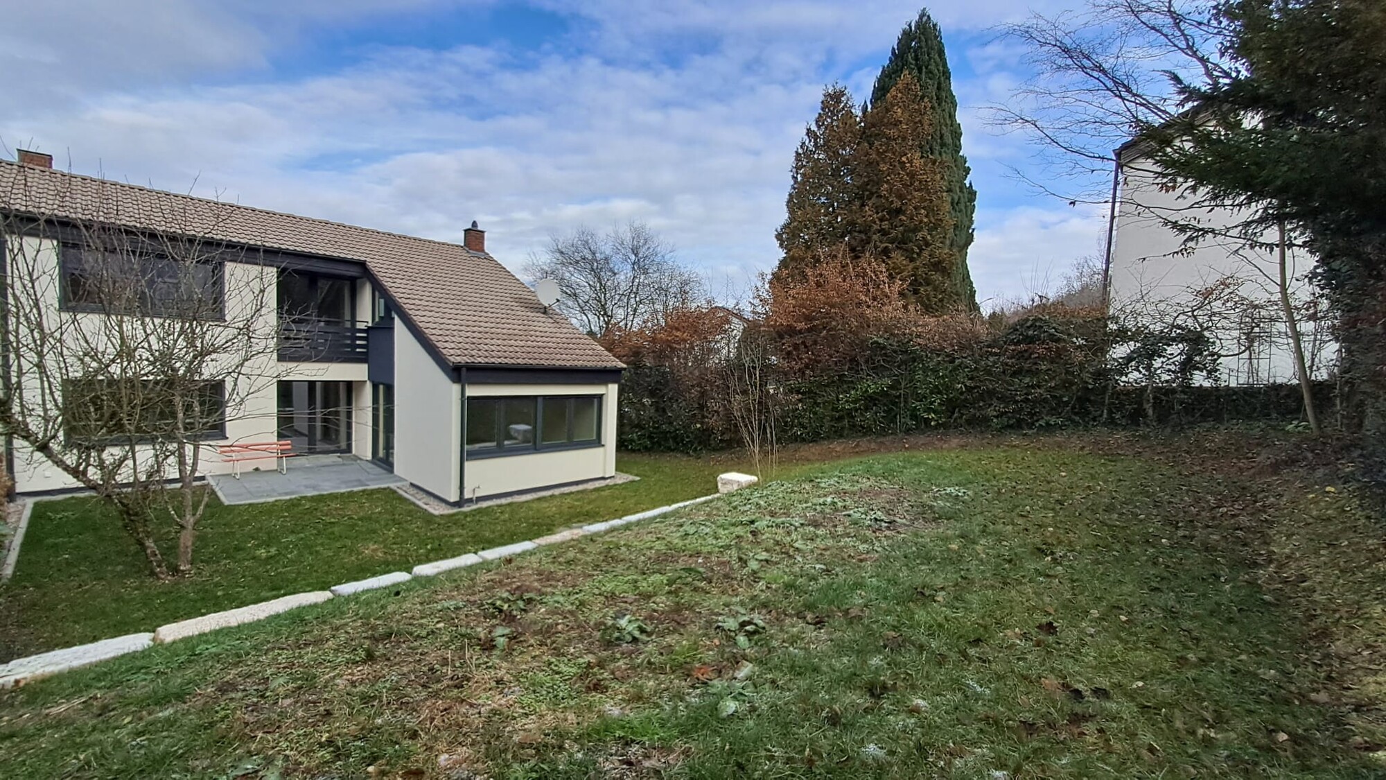 Die Immobilie verfügt über moderne 3-fach verglaste Kunststofffenster mit z. T. elektrischen Jalousien. Zusätzlich bietet das Haus einen großen Garten, der ideal für Familien mit Kindern oder als Rückzugsort im Grünen geeignet ist, eine großzügige Terrasse lädt zu entspannten Stunden oder geselligen Abenden einlädt. Für sonnige Tage steht ein Balkon zur Verfügung, von dem aus Sie den Blick in die Umgebung genießen können.