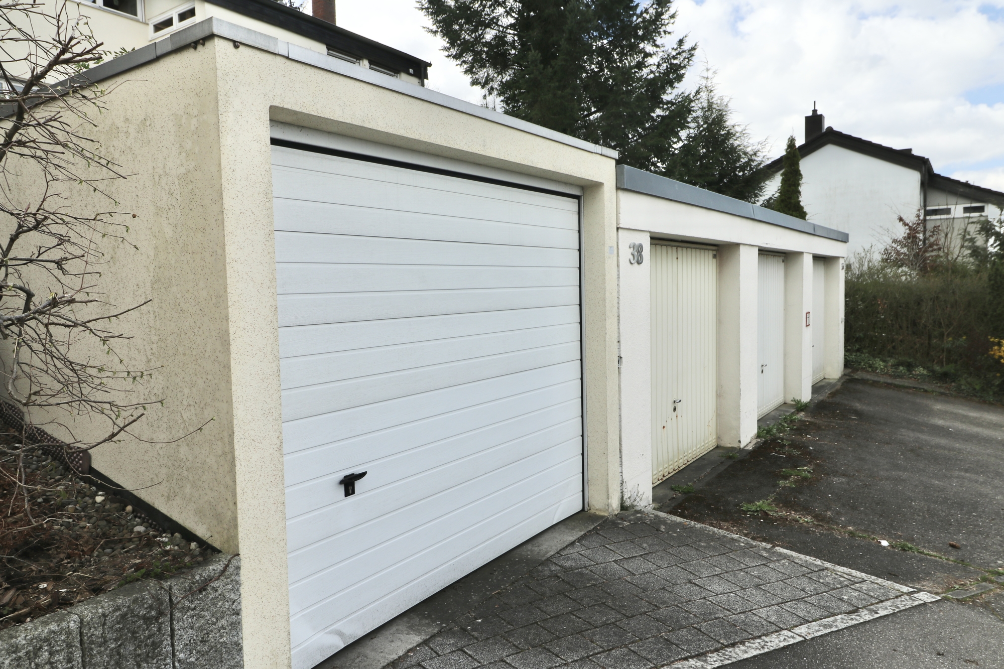 Zum Haus gehört eine Einzelgarage und ein Stellplatz vor dem Haus.