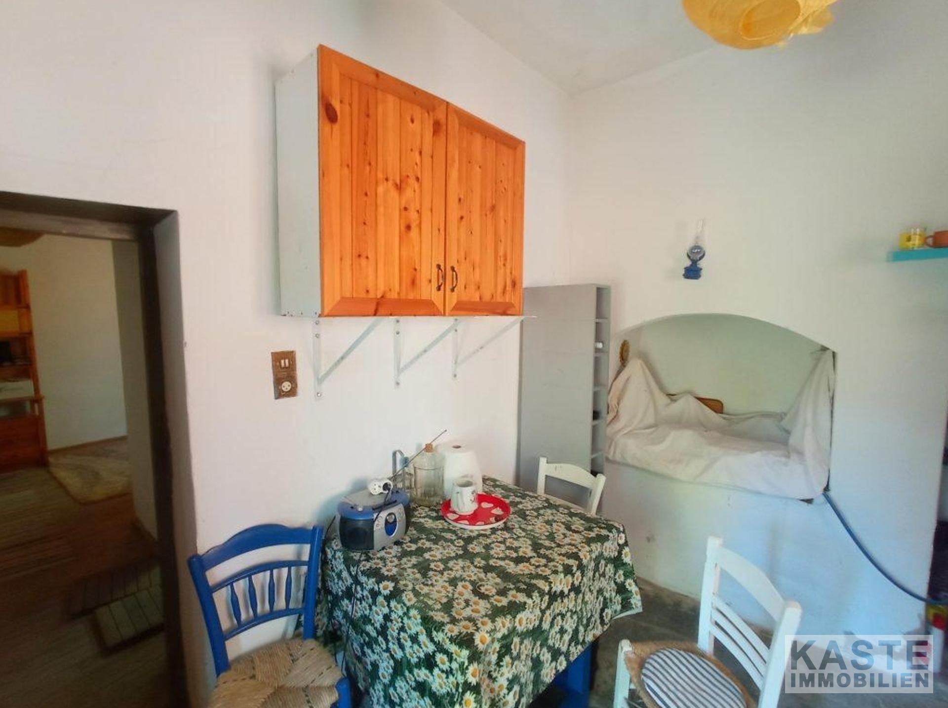 Im oberen Teil der kleinen kretischen Stadt Neapoli, Agios Nikolaos, Lasithi, Kreta gelegen, ist dies ein altes (1870) freistehendes Steinhaus auf einem großen, eingezäunten Privatgrundstück von 1.300m2, zu dem ein unfertiges Gästehaus, ein Blumen- und Baumgarten und ein Olivenhain mit eigenem Brunnen gehören.