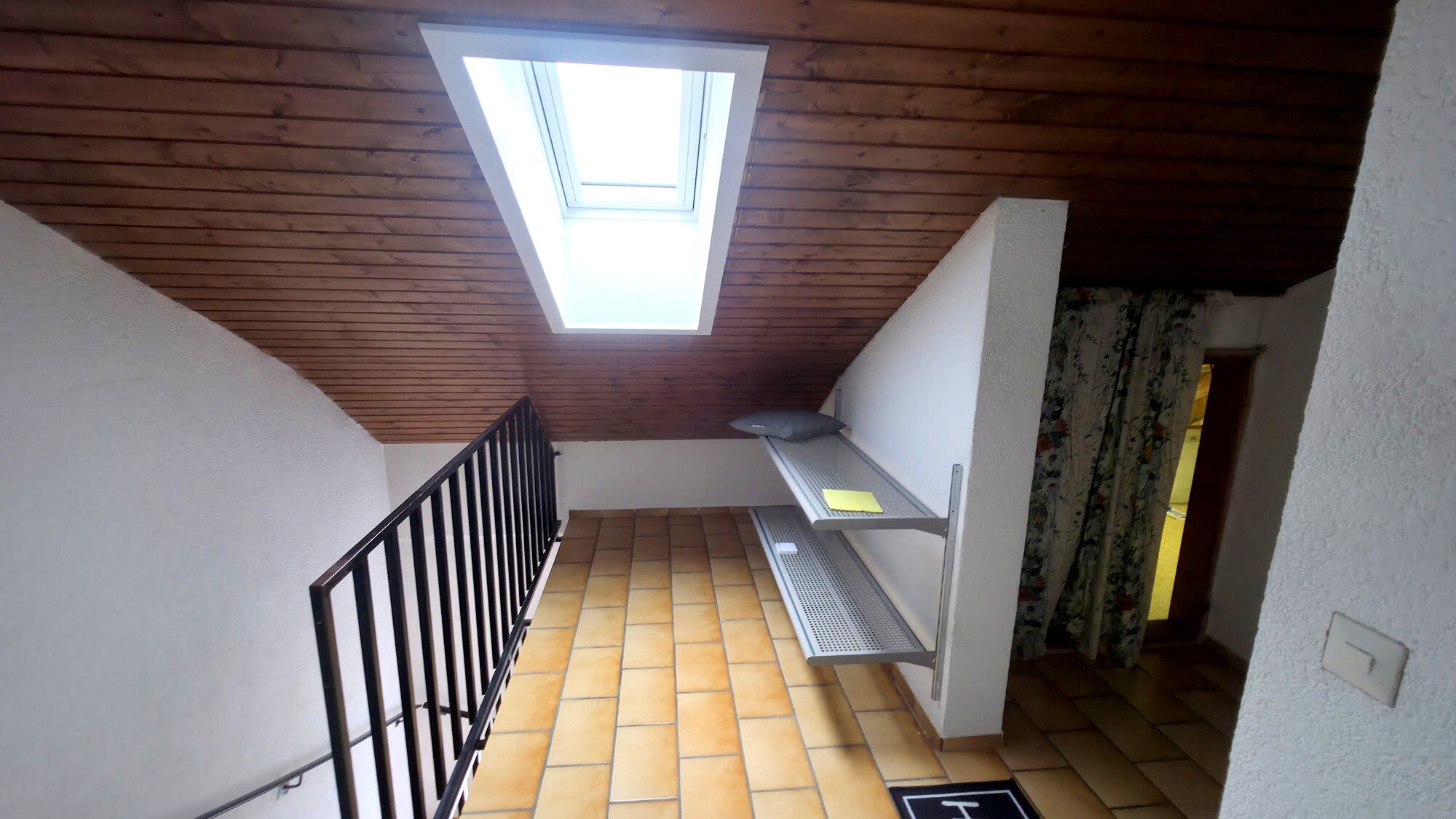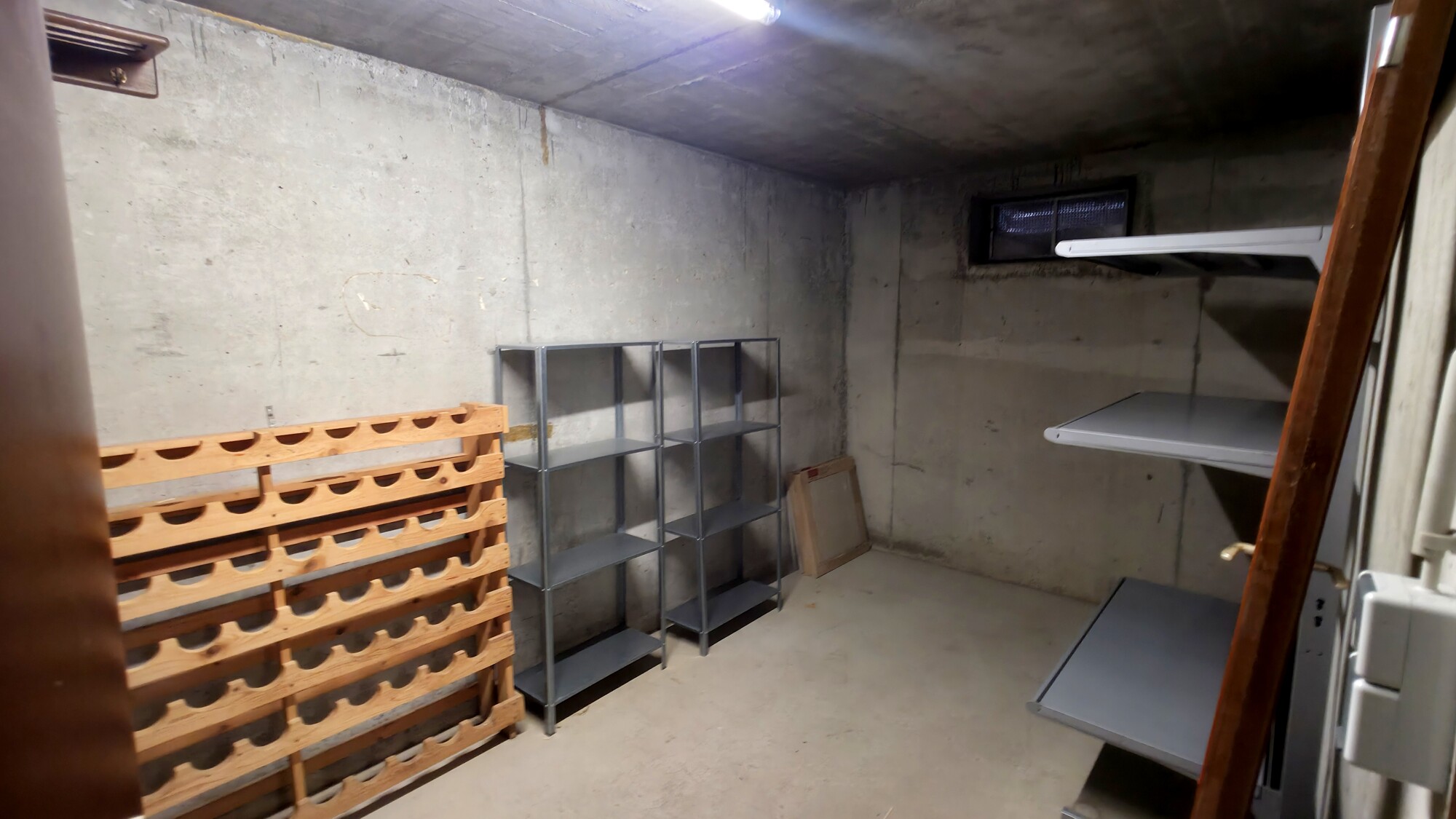 Im Treppenhaus finden Sie zusätzlich praktische Ablageflächen zur Lagerung von Alltagsgegenständen, wie beispielsweise Schuhen. Zur Wohnung gehört zudem ein eigenes Kellerabteil mit Regalen, einschließlich eines Weinregals. Ein Waschmaschinenanschluss ist direkt neben der Heizungsanlage vorhanden.