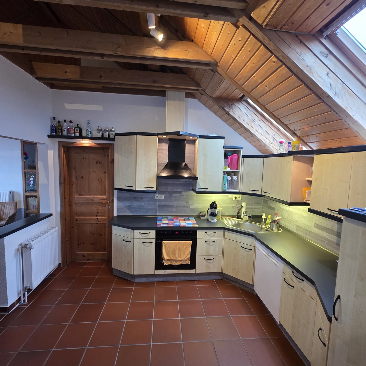 - ca. 140 m² Wohnfläche - Großzügiger, offener Wohn- und Essbereich - Sichtbare Balken mit besonderem Charme - Großer Balkon, begehbar vom Wohn-/Esszimmer - Einbauküche ohne Herd und Backofen (Übernahme möglich) - Praktischer Abstellraum/Speisekammer neben der Küche - Tageslichtbad mit Badewanne und separater Dusche - Separates WC mit Waschmaschinenanschluss - Eigener, großer und abschließbarer Kellerraum - Garage optional für 50 € monatlich - Gepflegter Zustand - Verfügbar ab 01.05. - 980 € Kaltmiete - 320 € Nebenkosten inkl. Heizung - Strom separat anzumelden - Kaution: 2 Kaltmieten