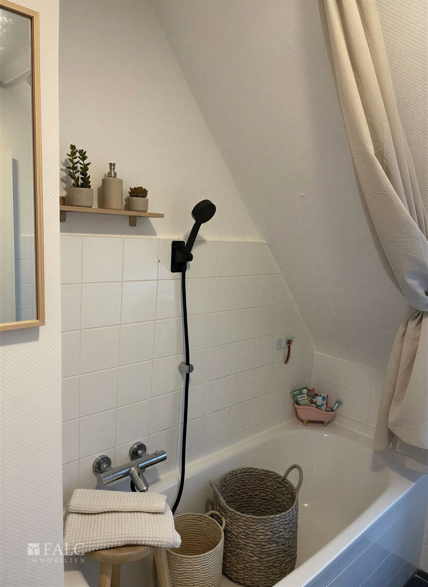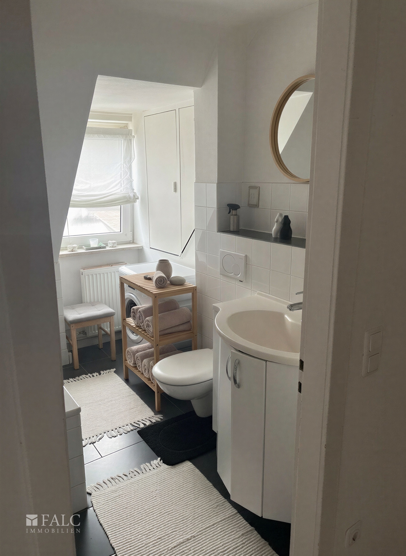 Durch den charmanten Dachgeschoss-Charakter entsteht ein besonders gemütliches und helles Wohngefühl. Große Fenster sorgen für viel Tageslicht und schaffen eine freundliche, einladende Atmosphäre.