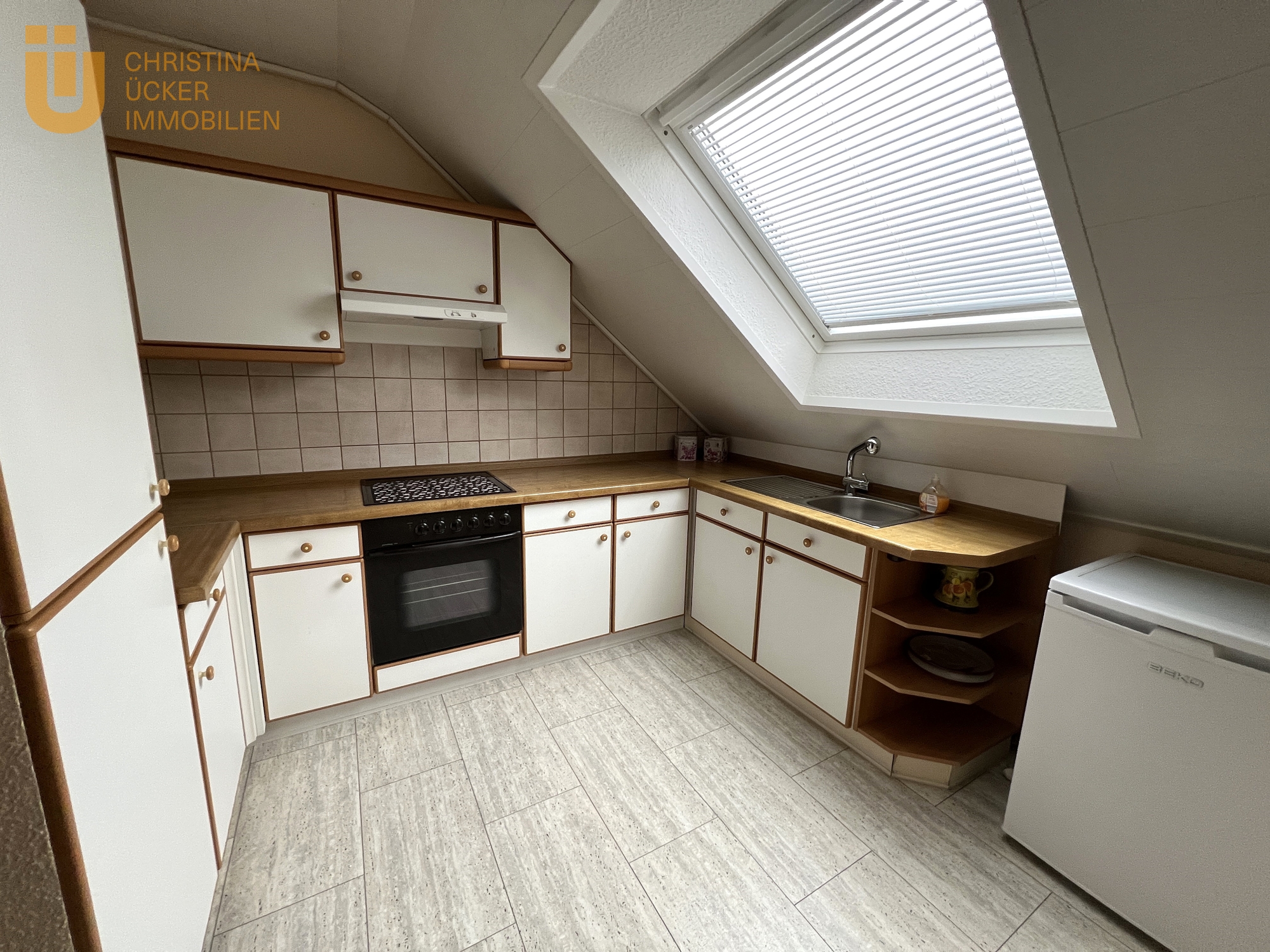 An den vorderen Teil des Wohnbereiches grenzt die Küche. Sie ist mit einer Einbauküche (ohne Geräte) ausgestattet und ermöglicht unzählige kulinarische Abenteuer.