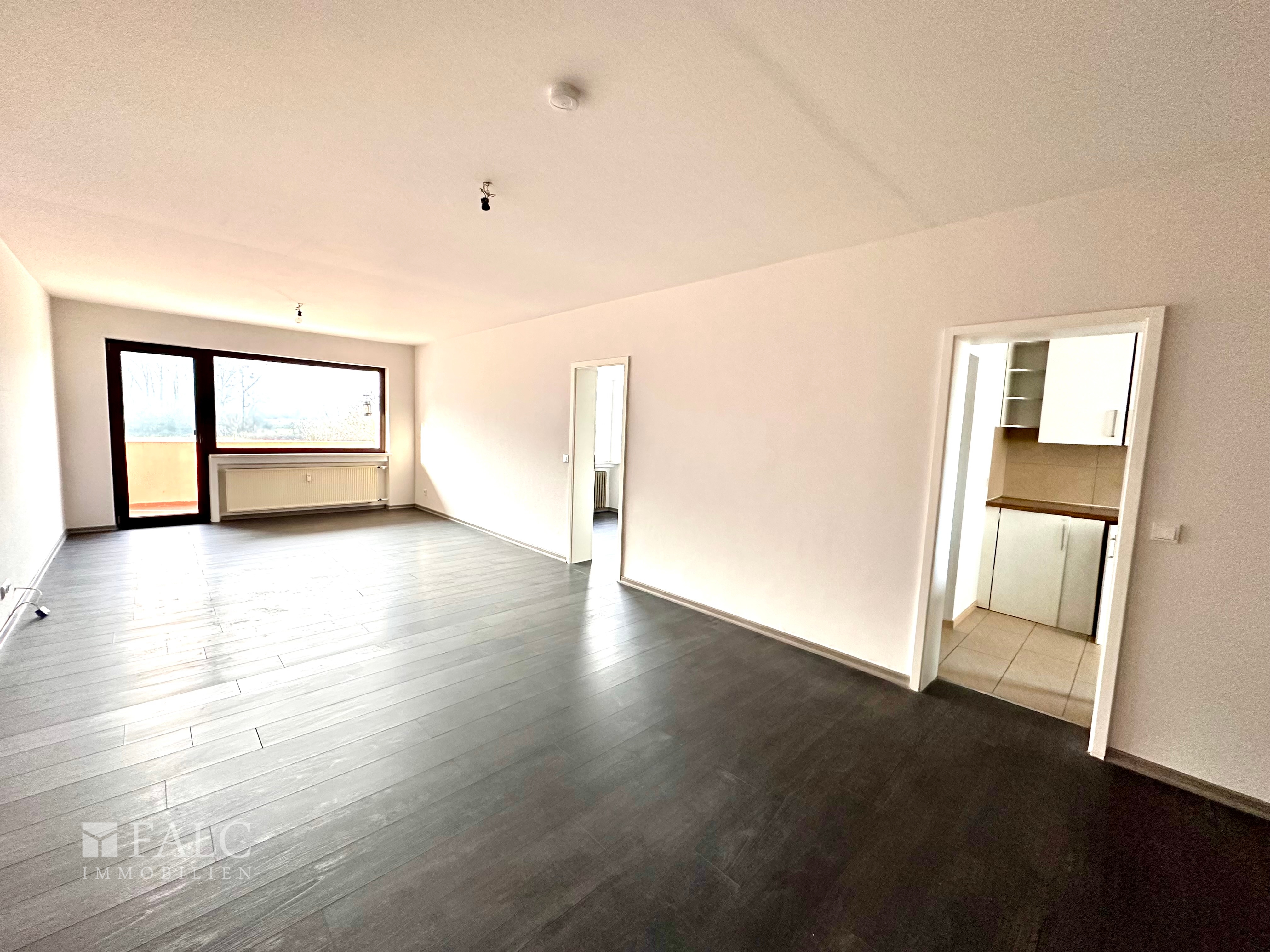 Die Wohnung verfügt über ein großes Wohnzimmer mit Balkonzugang, zwei gut geschnittene Schlafzimmer, eine Küche sowie ein modernes Badezimmer und ein separates WC.
