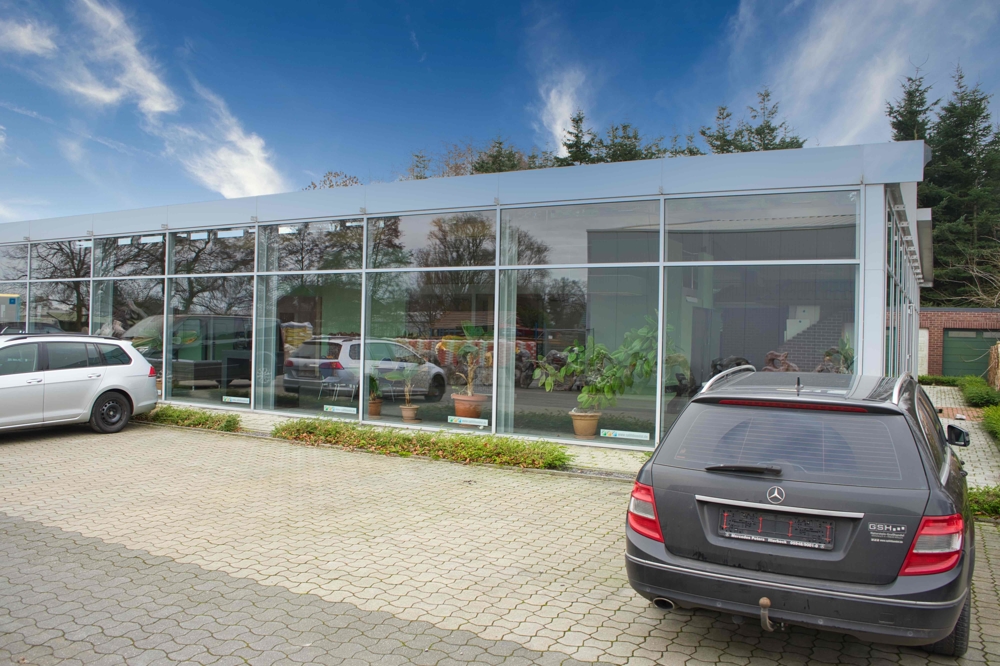 - separate Zufahrt - die Sanitäranlagen sind in einem sehr gepflegten Zustand. - pflegeleichter Industriefußboden, sowie auch Teppichelemente und Steinteppichelemente - Glasfaseranschluss ist vorhanden - zentral an der Bundesstraße 403 gelegen - Grundstück ist zum größten Teil eingezäunt - Ausstellungsfläche im Innen- sowie auch im Außenbereich -beheizbare und trockene Lagerflächen