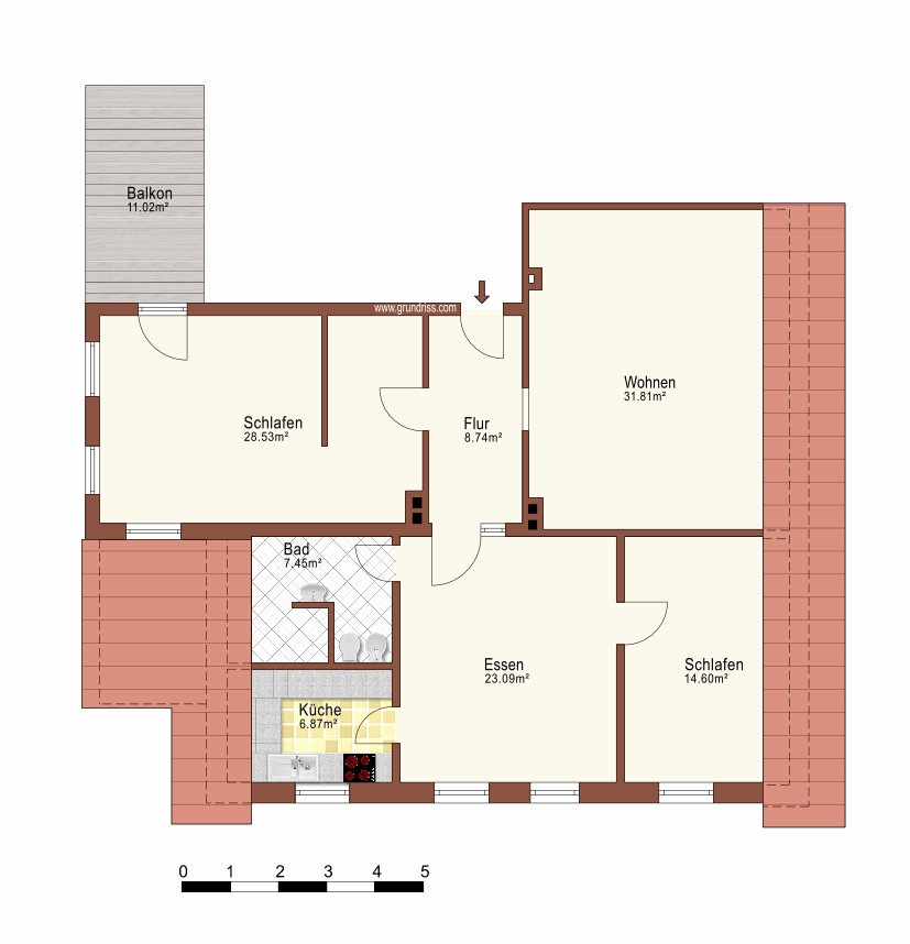 Die Einbauküche ist mit Elektrogeräten voll ausgestattet. Des weiteres gehört zur Wohnung einen zugewiesenen Gartenplatz.