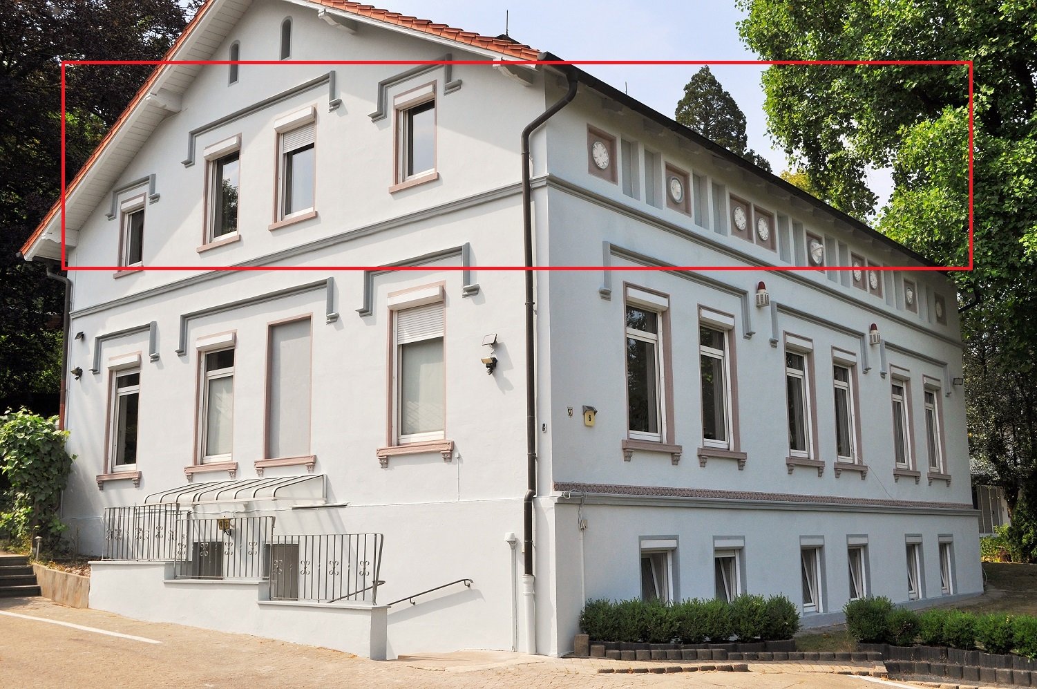 Diese Wohnung befindet sich im Dachgeschoss der repräsentativen Stadtvilla mit insgesamt 4 Wohnungen. Im Jahr 2022 wurde die Wohnung umfangreich renoviert. Im Garten hinter dem Haus befinden sich auf der großen überdachten Terrasse gemütlichen Erholungsplatz zur gemeinschaftlicher Nutzung.