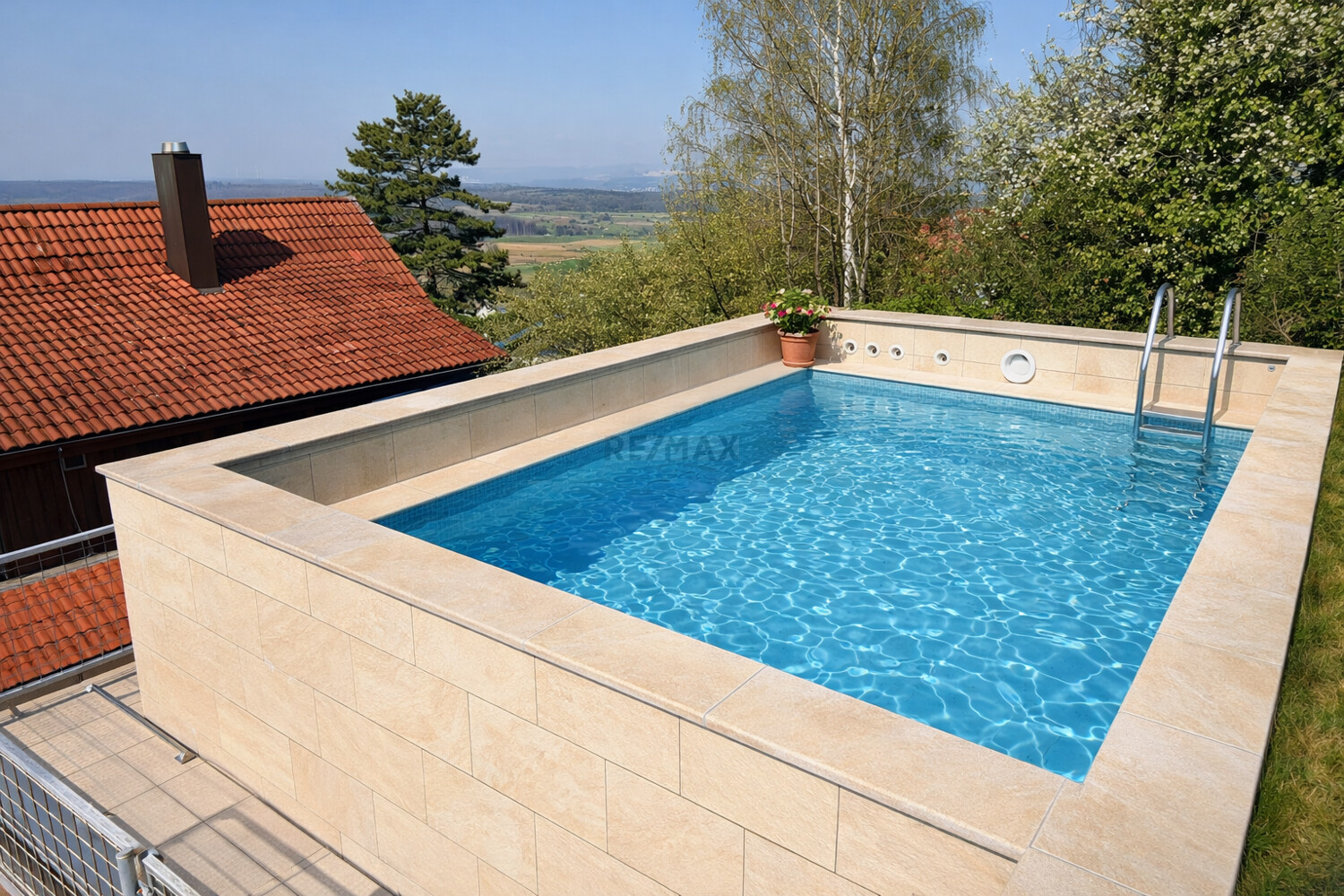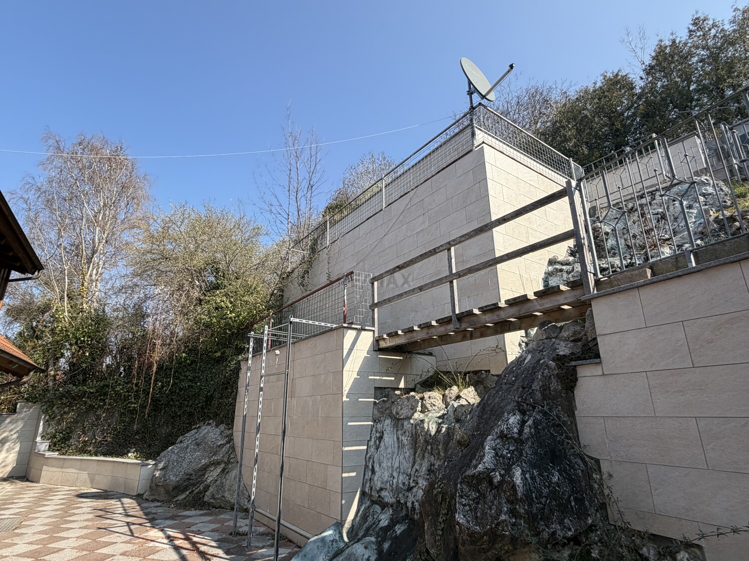 Ein besonderes Highlight ist die außergewöhnlich gestaltete Außenanlage, die sich harmonisch in die Hanglage einfügt.