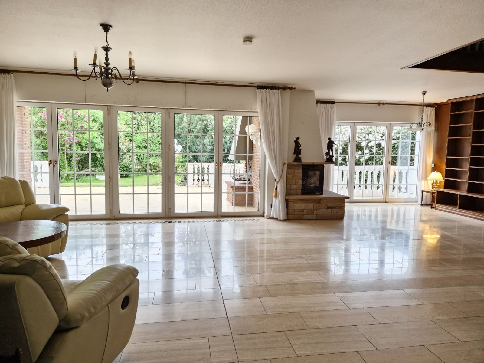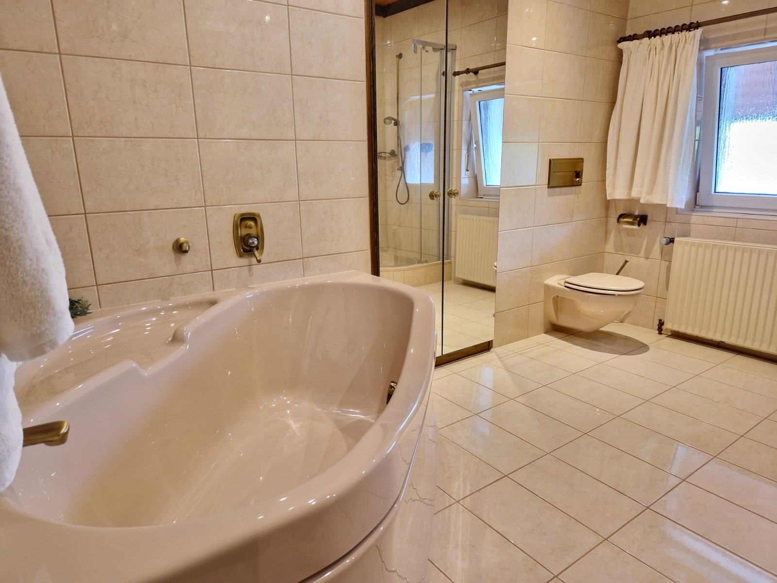 Grundstück: 1.248 m² Wohnfläche Haus: 196 m² Wohnfläche Einliegerwohnung: 67 m² Nutzfläche im Spitzboden: 60 m² Fläche im Kellerbereich: 146 m² Drei Bäder: -Tageslicht-Badezimmer mit Dusche, Badewanne, WC, zwei Waschbecken im Dachgeschoss -Tageslicht-Badezimmer mit Badewanne, WC, zwei Waschbecken in der Einliegerwohnung -Tageslicht-Badezimmer mit Dusche, WC, Waschbecken im Spitzboden - zwei Gäste WC - Terrasse - Balkon - zwei Garagen - zwei Einbauküchen - Kellerbar - teilweise elektrische Rollläden - Fußbodenheizung im Wohnzimmer