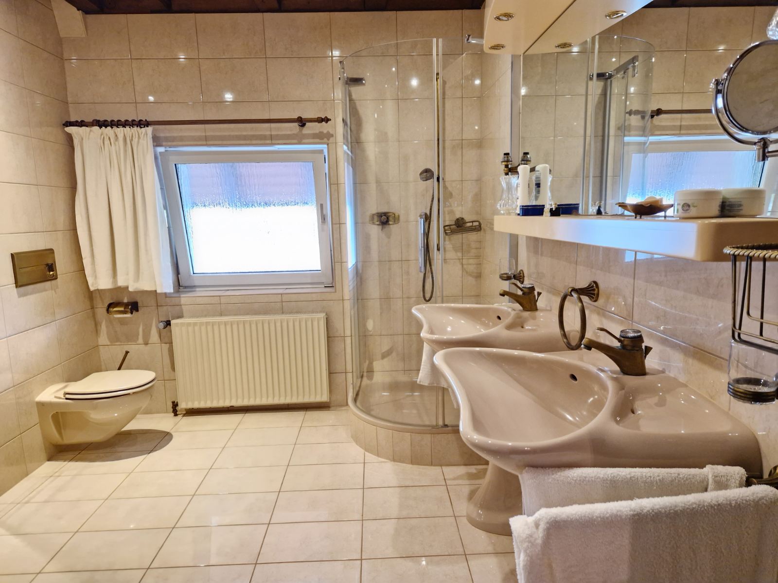 Der Spitzboden ist ausgebaut und bietet ca. 60 m² weitere Nutzfläche mit zwei großen Zimmern sowie Tageslichtbad mit Dusche, WC und Waschbecken. Diese Fläche kann sowohl dem Haus als auch der Einliegerwohnung zugeordnet werden, da von beiden Bereichen zugängig.