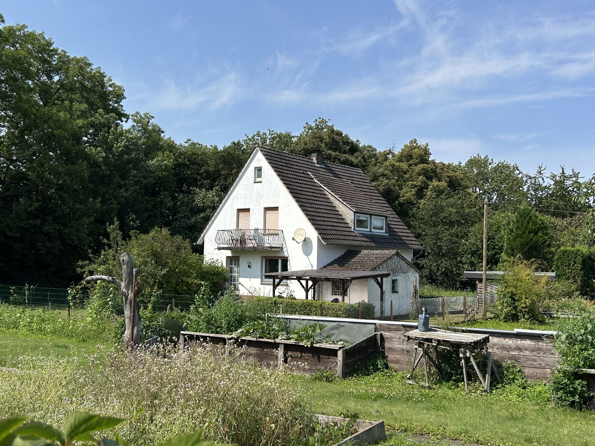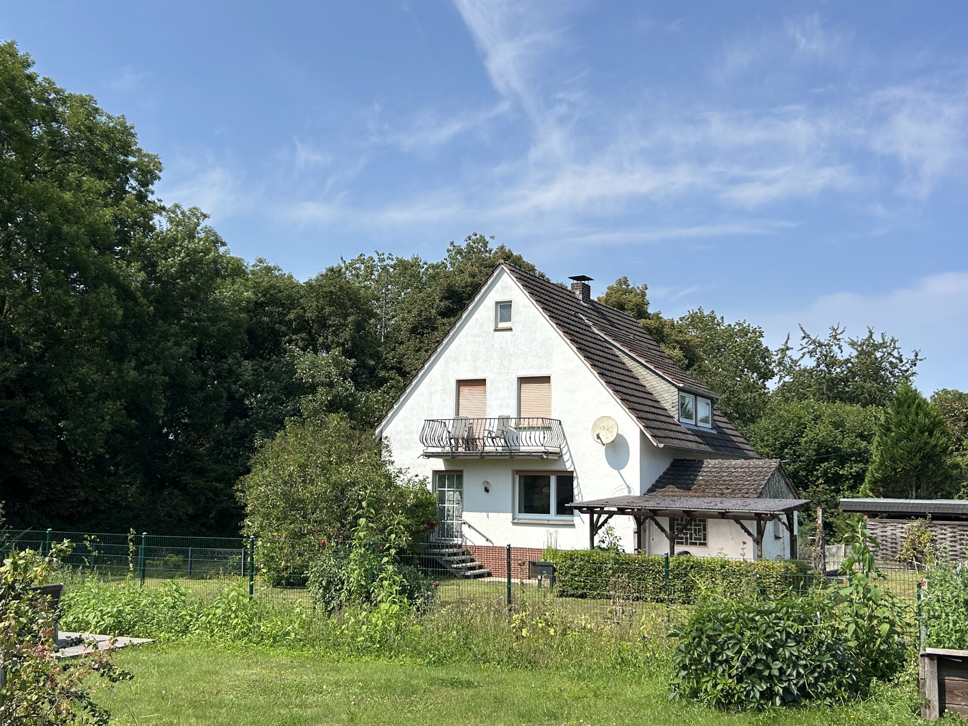 Dieses gepflegte Einfamilienhaus befindet sich am Ortsrand von Obermarsberg in einer ruhigen Sackgasse. Es besticht durch seine großzügige Raumaufteilung und die liebevoll gestalteten Außenbereiche. Das Haus verfügt über eine überdachte Terrasse sowie einen Balkon, die zum Verweilen im Freien einladen. Der große, eingezäunte Garten bietet viel Platz für Erholung und Aktivitäten im Freien. Praktisch ist der direkte Ausgang von der Küche in den Garten, was den Alltag besonders angenehm gestaltet. Für Fahrzeuge stehen sowohl ein Doppelcarport als auch eine separate Garage zur Verfügung. Im Keller befindet sich ein Partyraum mit Theke, ideal für gesellige Abende mit Familie und Freunden. Beheizt wird das Haus komfortabel mittels Gasheizung. Die Lage zeichnet sich durch ihre sehr ruhige Umgebung aus, die Ruhe und Privatsphäre garantiert.
