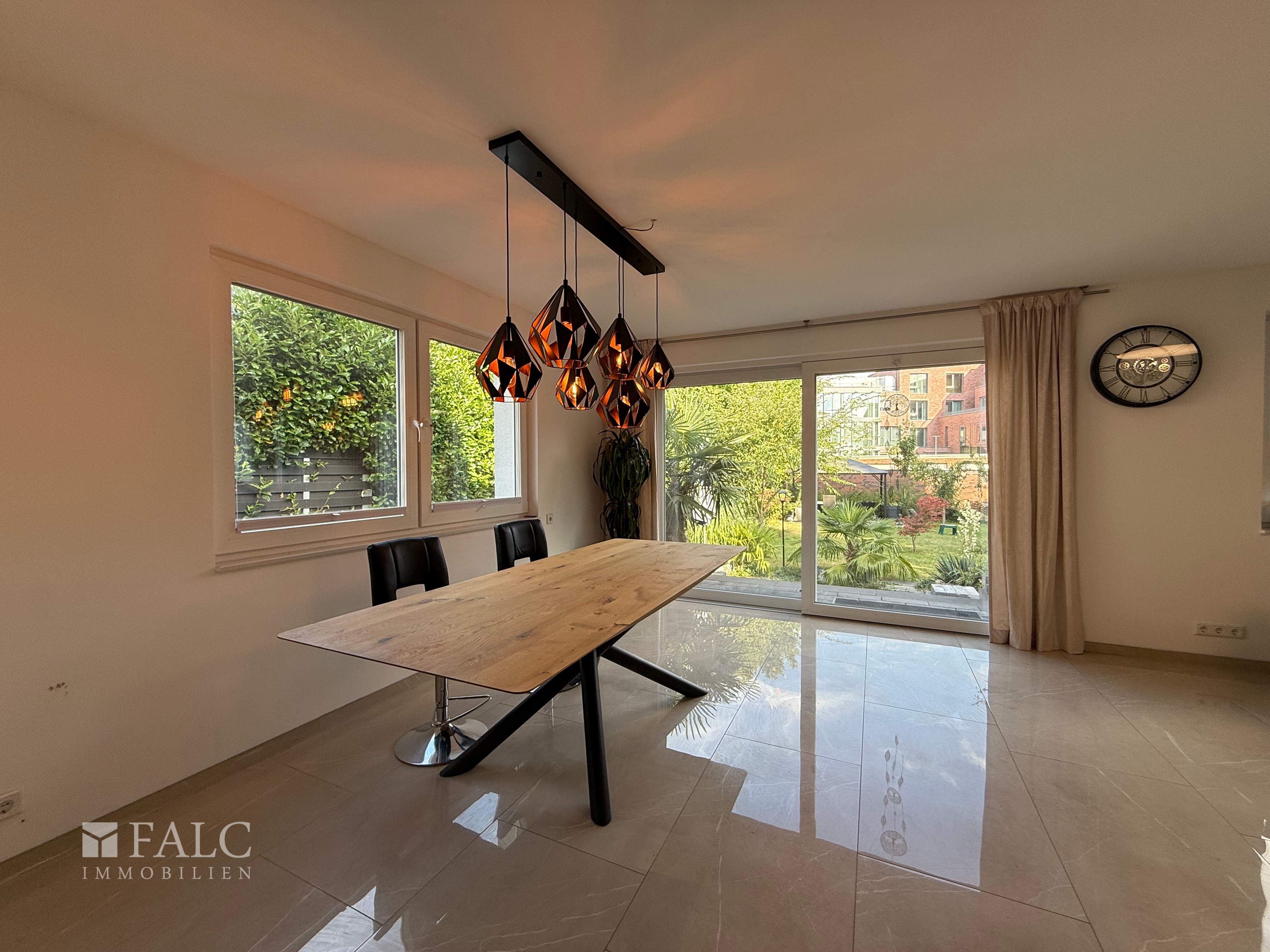 Bereits beim Betreten des Hauses empfängt Sie ein einladender und großzügiger Eingangsbereich, der einen ersten Eindruck vom stilvollen und gepflegten Ambiente des Hauses vermittelt. Das helle Wohnzimmer, das im Jahr 2022 durch einen Anbau erweitert wurde, besticht durch seine großen Fensterflächen, die nicht nur für ein angenehmes Tageslicht sorgen, sondern auch einen wunderschönen Blick in den liebevoll angelegten Garten ermöglichen. Hier lässt es sich entspannen, genießen oder gemeinsam mit der Familie Zeit verbringen.