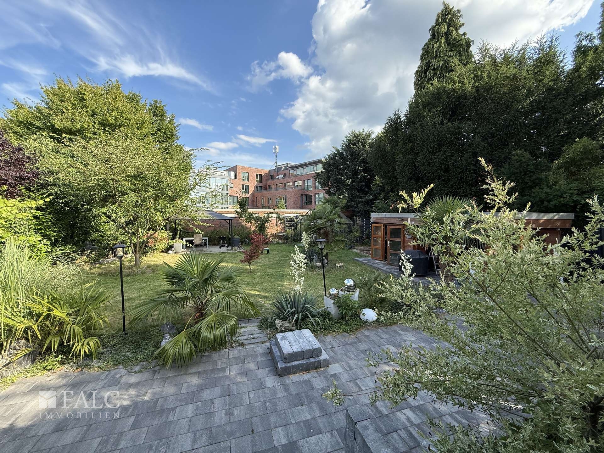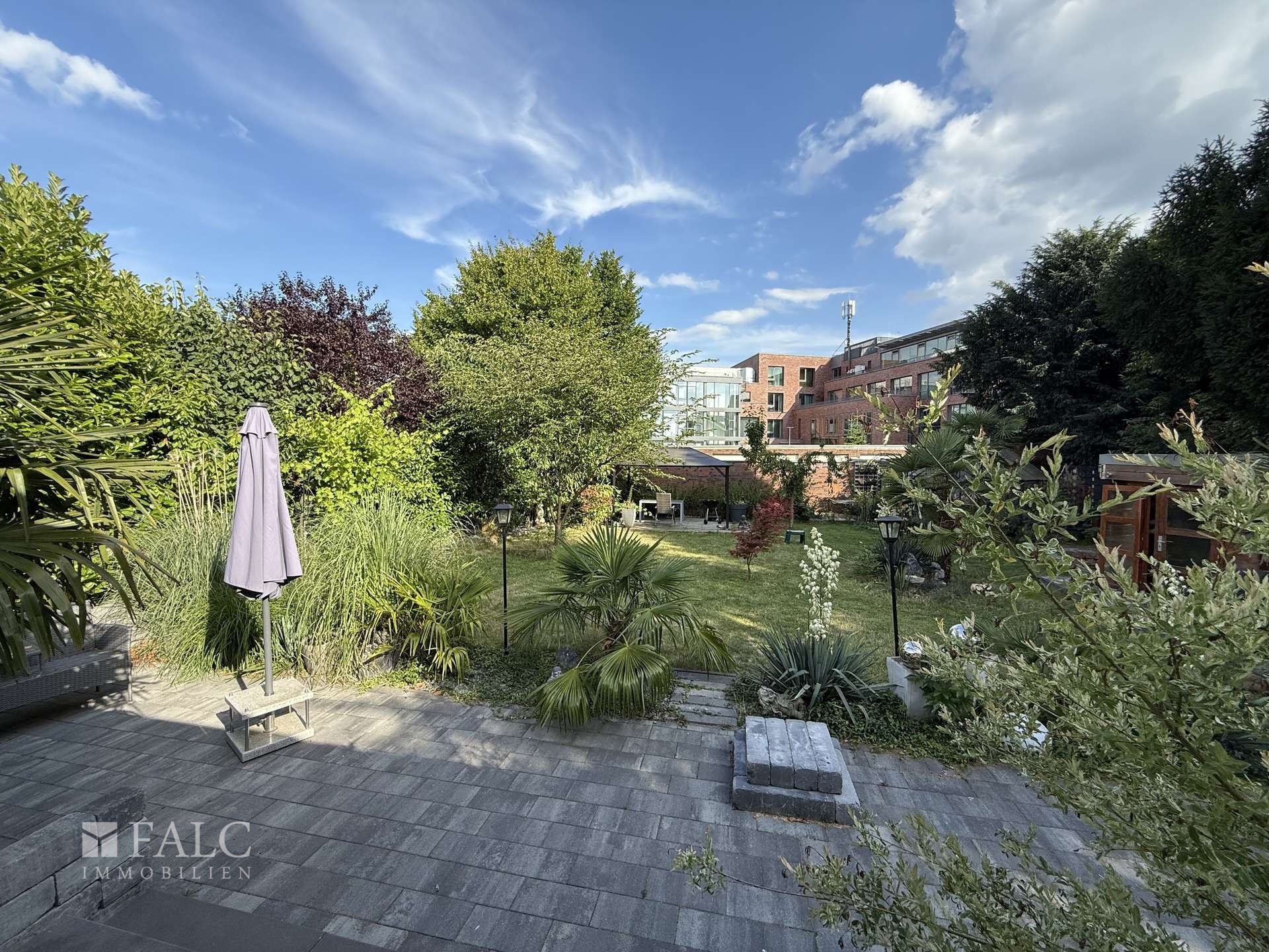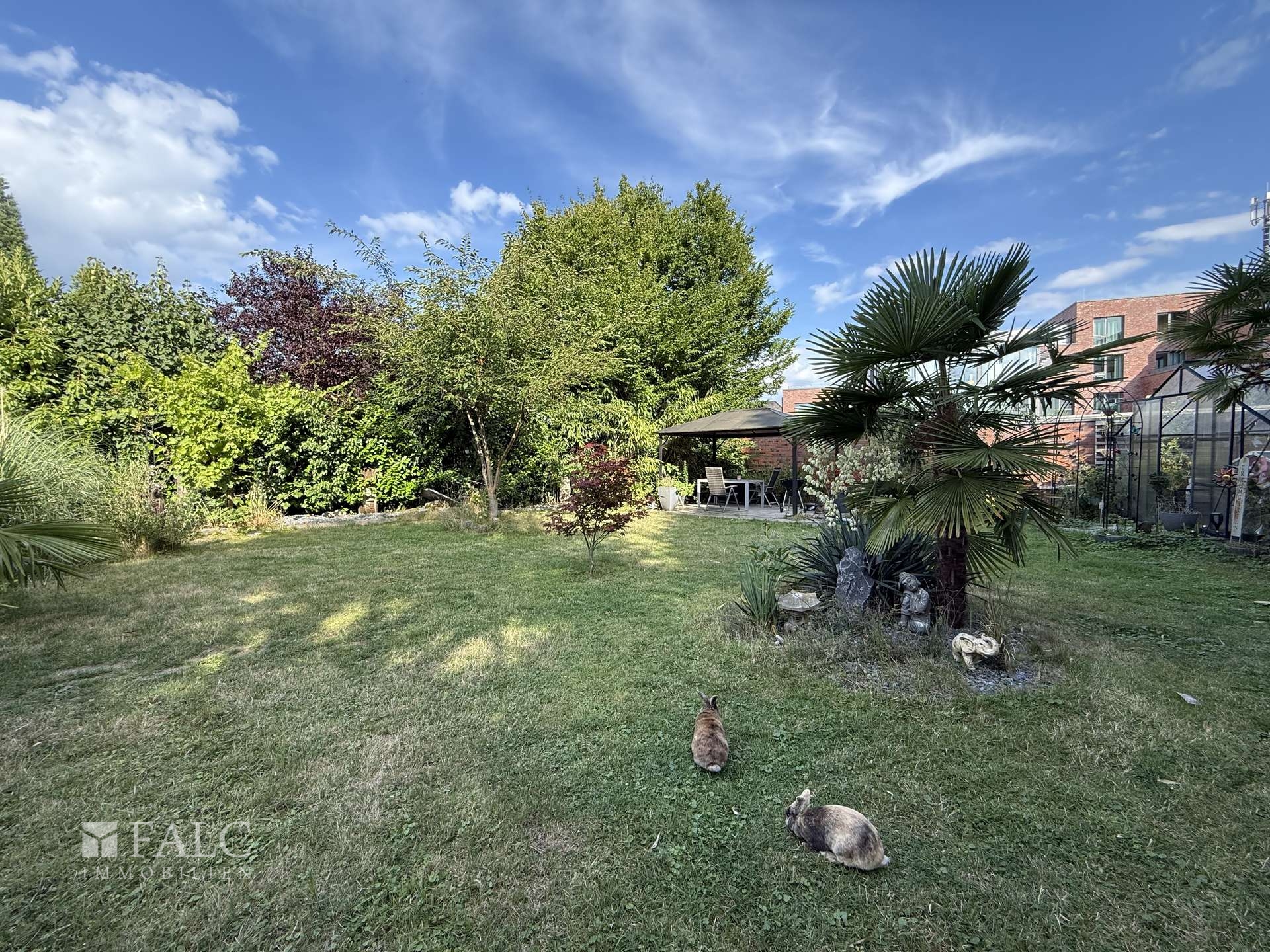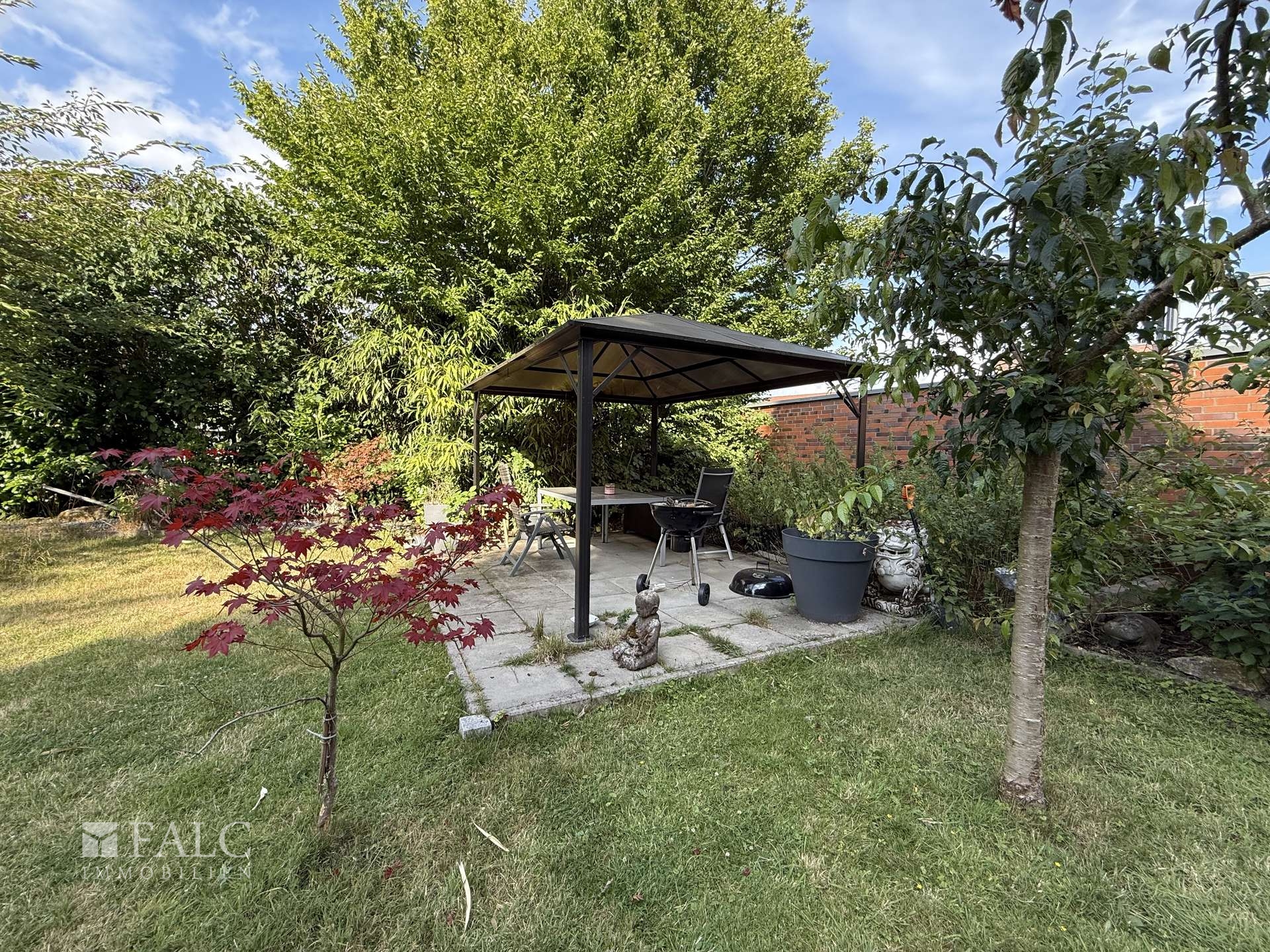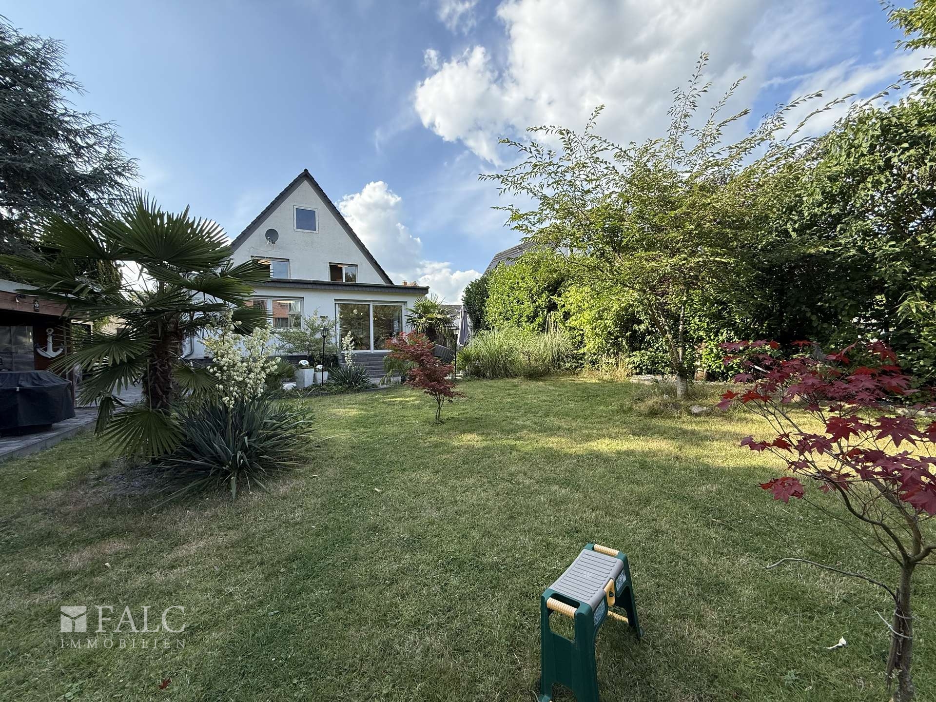 Der liebevoll angelegte Garten ist eine grüne Oase mit Platz für Spiel, Entspannung und Gartenfreude. Ob Sandkasten, Liegestuhl oder Grillplatz – hier finden alle Familienmitglieder ihren Lieblingsplatz im Freien.