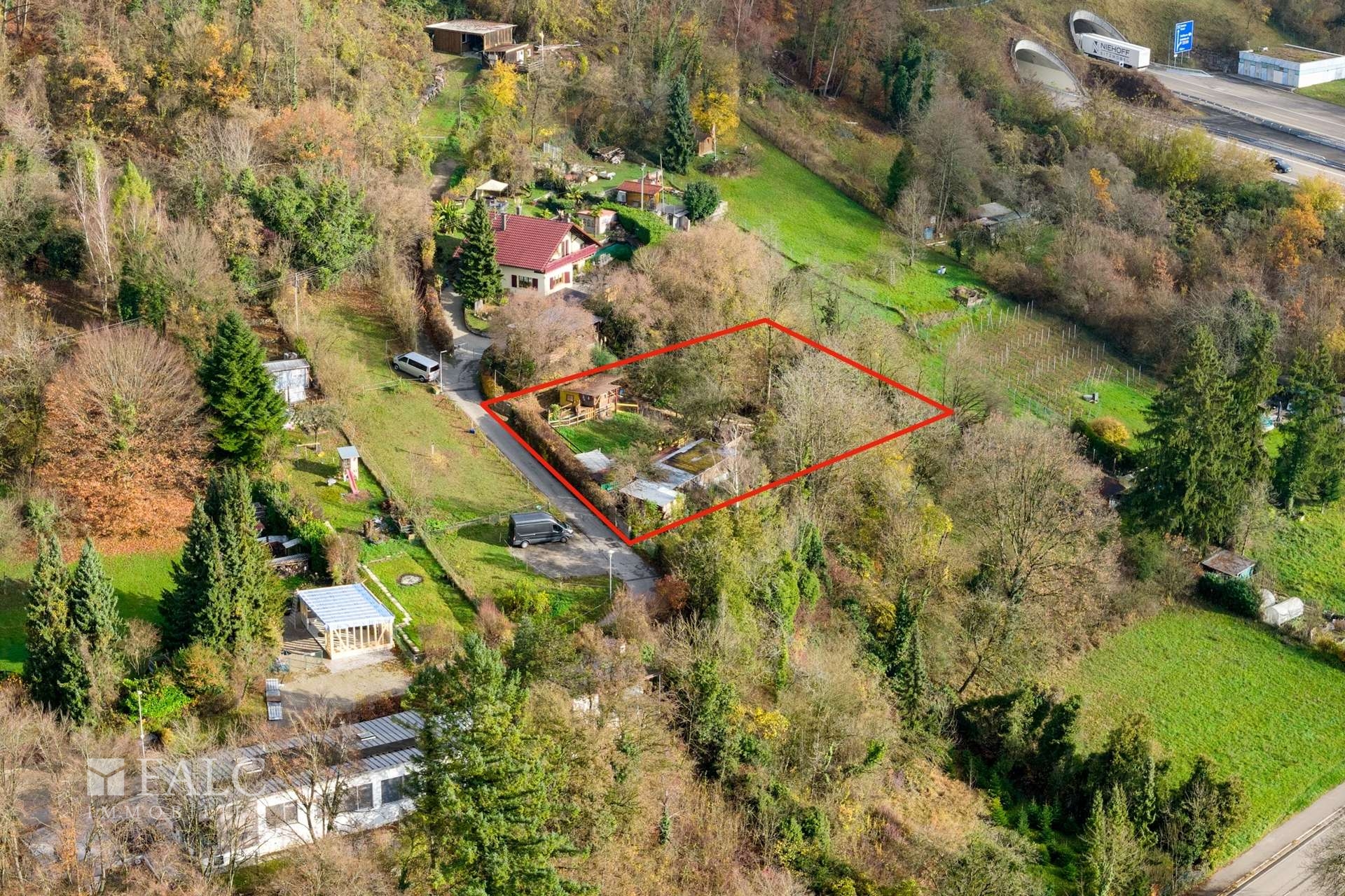 Das Grundstück befindet sich in einer beliebten und naturnahen Wohn- und Freizeitlage am südlichen Rand der Stadt Rheinfelden Die erhöhte Position bietet einen weiten Blick in Richtung Rheinfelden und bis nach Basel.