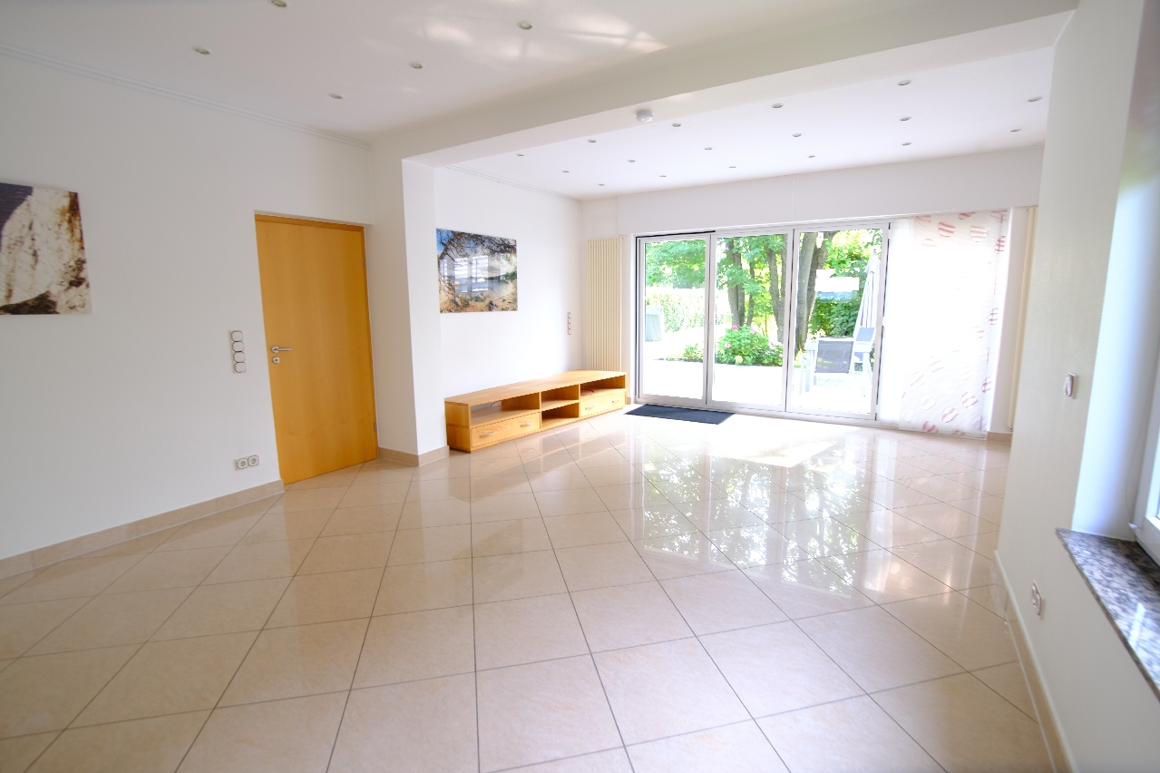 Wohnung I ist ca. 90 m² groß und befindet sich im Erdgeschoss. Über den seitlichen Eingang kommt man in die geräumige Diele mit Platz für eine Garderobe und Zugang zu den weiteren Wohnräumen. Hier befinden sich ein heller, gut geschnittener Wohnraum von ca. 35 m² mit Zugang zur ca. 40 m² großen Terrasse. Rechts daneben liegt die offene Küche mit einem Esszimmer. Weiter befinden sich noch ein Schlafzimmer und ein ansehnliches Badezimmer mit Badewanne, Handwaschbecken und WC auf dieser Etage.