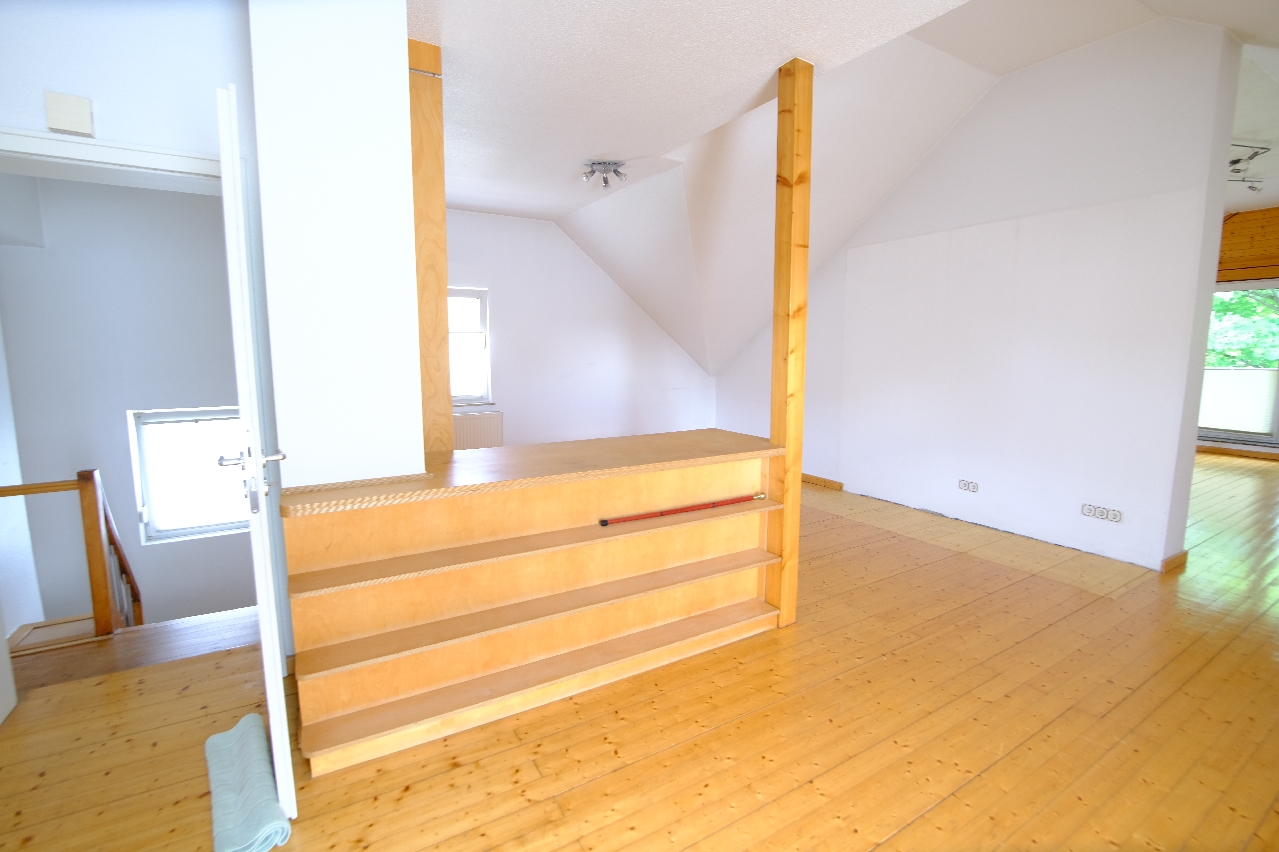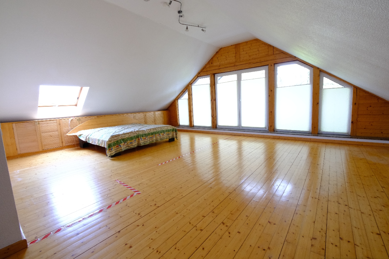 Wohnung II ist ca. 80 m² groß und befindet sich im gesamten Obergeschoss. Über den vorderen Eingang betreten Sie den Hausflur und gelangen über eine Treppe zur Wohnungsdiele und dort befinden sich ein kleiner Küchenbereich mit Essecke, ein großes Wohnzimmer von ca. 30 m² mit Zugang zur Loggia und Überblick über den gepflegten Gartenbereich. Ein helles Badezimmer mit Dusche, Handwaschbecken und WC und ein Schlafraum runden die Wohnung ab. Wenn Sie beide Wohnungen nutzen wollen, könnte dort weiterer Raum zu Schlafräumen umgebaut werden. Die Immobilie ist nur zum Teil unterkellert. Es befindet sich dort ein Heizungskeller ein Vorratsraum mit Fenster und ein Abstellraum.