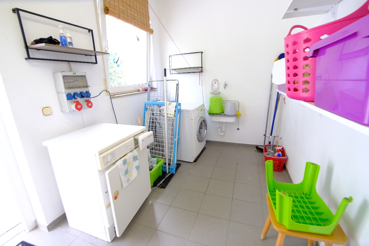 Diese außergewöhnliche Immobilie ist geeignet für eine Familie, die viele große Räume braucht oder für zwei Familien mit getrennten Wohnungen und zwei separaten Eingängen. Der Altbau wurde 1922 mit Keller errichtet, 1964 wurde dort eine Gebäudeerweiterung dazugebaut und 1994 ist der hintere Teil der Immobilie erbaut worden mit kompletter Dachsanierung. Über einen ca. 3,50 m breiten und ca. 22 m langen Einfahrtsweg mit eingetragenem Wegerecht können Sie die Immobilie erreichen. Durch eine, bereits von den jetzigen Eigentümern notarielle Teilungserklärung, ist die Immobilie in zwei Wohneinheiten geteilt (zwei Grundbücher) und können so wieder ohne weitere Eintragungskosten übernommen werden. Die Wohnungen teilen sich wie folgt auf: