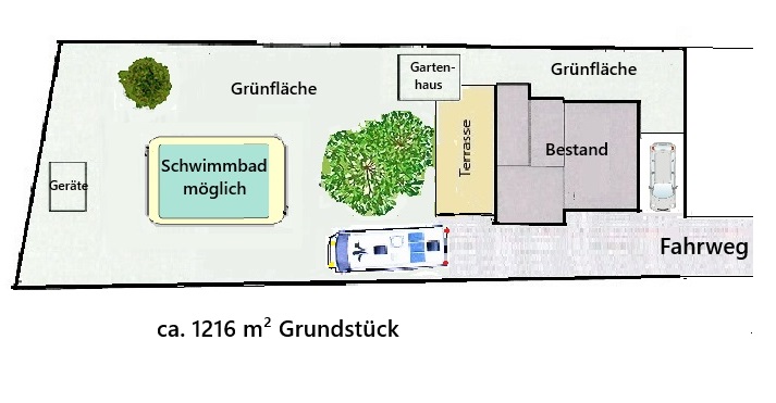Vor der Immobilie befindet sich noch ein ca. 415 m² Bau- Grundstück zur Straßenseite mit Zufahrtsweg im einge- tragen Wege- und Leitungsrecht, welche separat oder in Kombi verkauft wird!