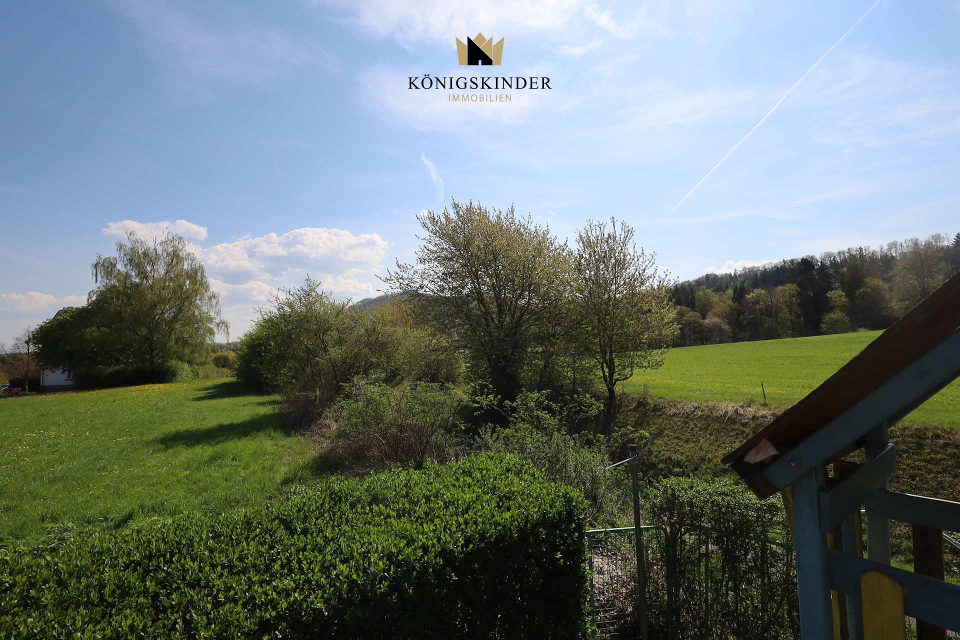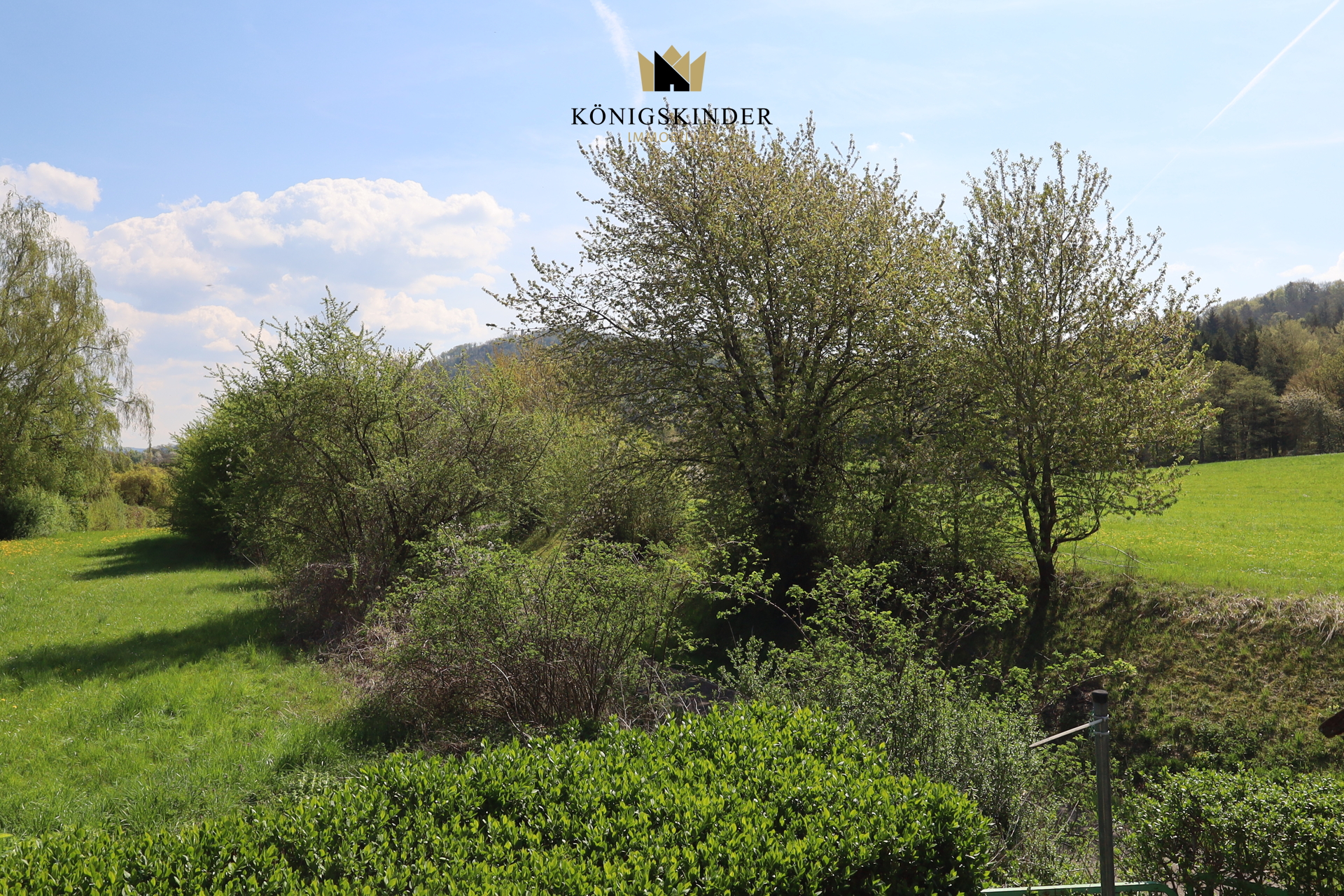 Vor dem Haus ist alles grün, hinter dem Haus ebenfalls - nur ein Fahrradweg im Tal auf einer ehemaligen Eisenbahntrasse trennt Sie von weiten Wiesen und dem Wald.