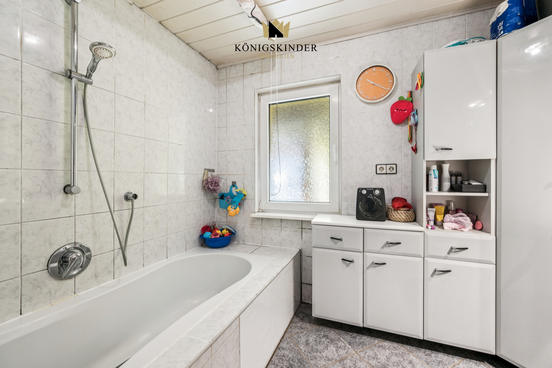 Im Erdgeschoss sind der Wohn/Essbereich, das Bad mit Wanne und die Küche mit Ausgang auf die überdachte Terrasse. Im Obergeschoss haben Sie drei Zimmer und einen Raum für ein zusätzliches Bad mit Dusche. Hier kann bei Bedarf eine Duschkabine wieder installiert werden. Alle Vorrichtungen sind vorhanden.