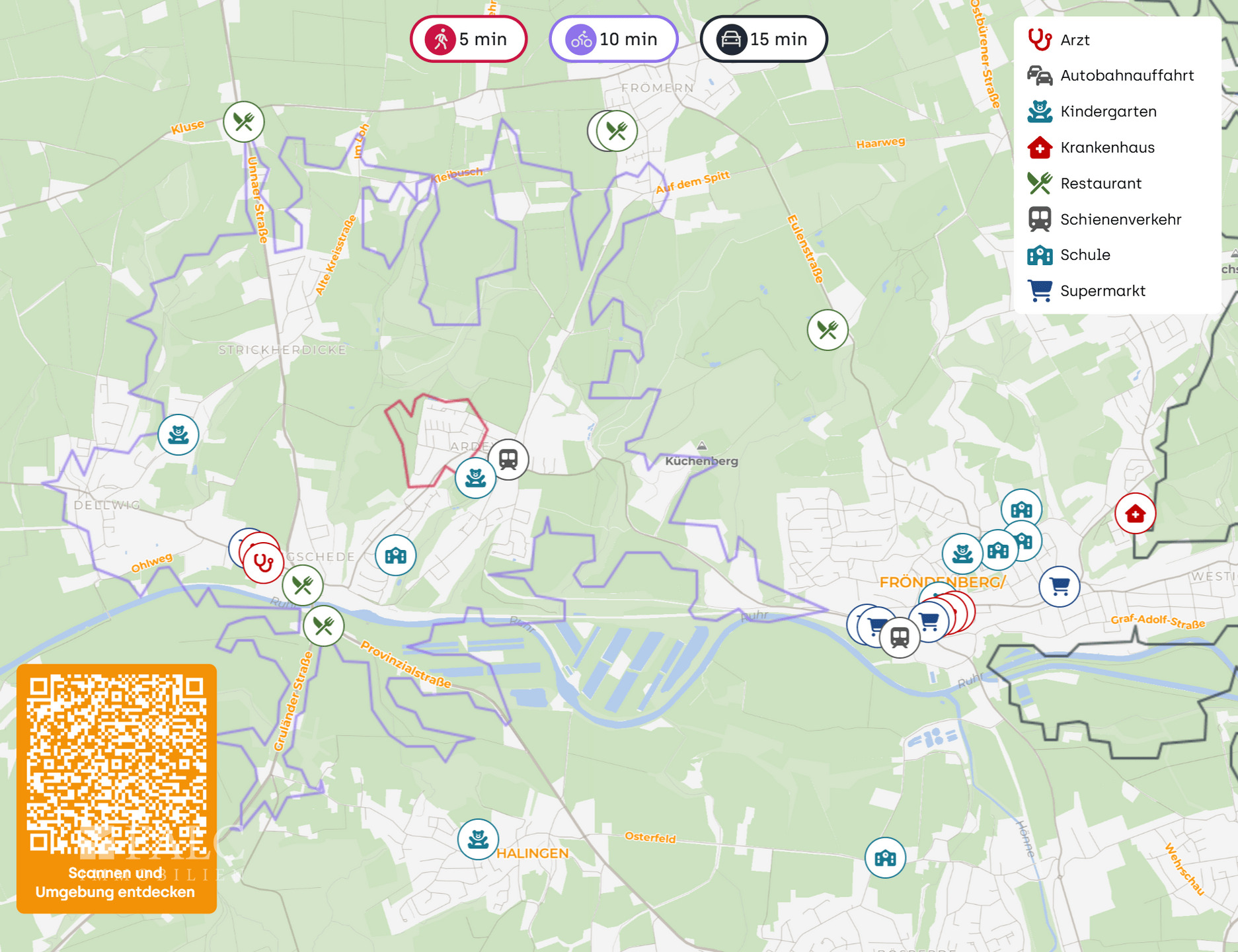 Diese Immobilie liegt in einer ruhigen und familienfreundlichen Gegend von Fröndenberg/Ruhr. Die Region bietet eine harmonische Mischung aus ländlichem Charme und städtischer Anbindung. In unmittelbarer Nähe befinden sich mehrere Spielplätze, die ideal für Kinder sind und nur wenige Gehminuten entfernt liegen. Für den täglichen Bedarf ist ein Supermarkt bequem erreichbar, sodass Einkäufe schnell erledigt werden können.