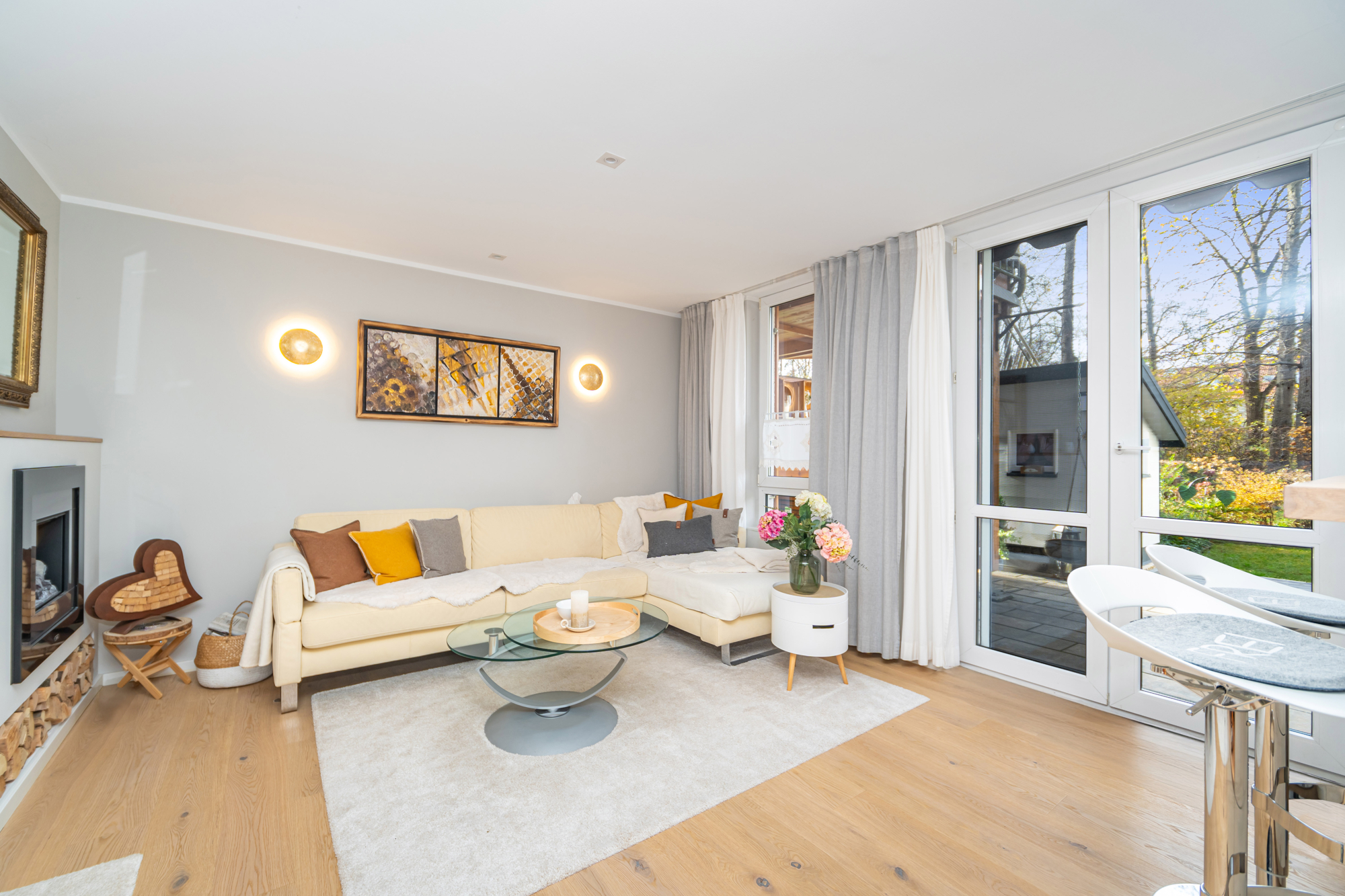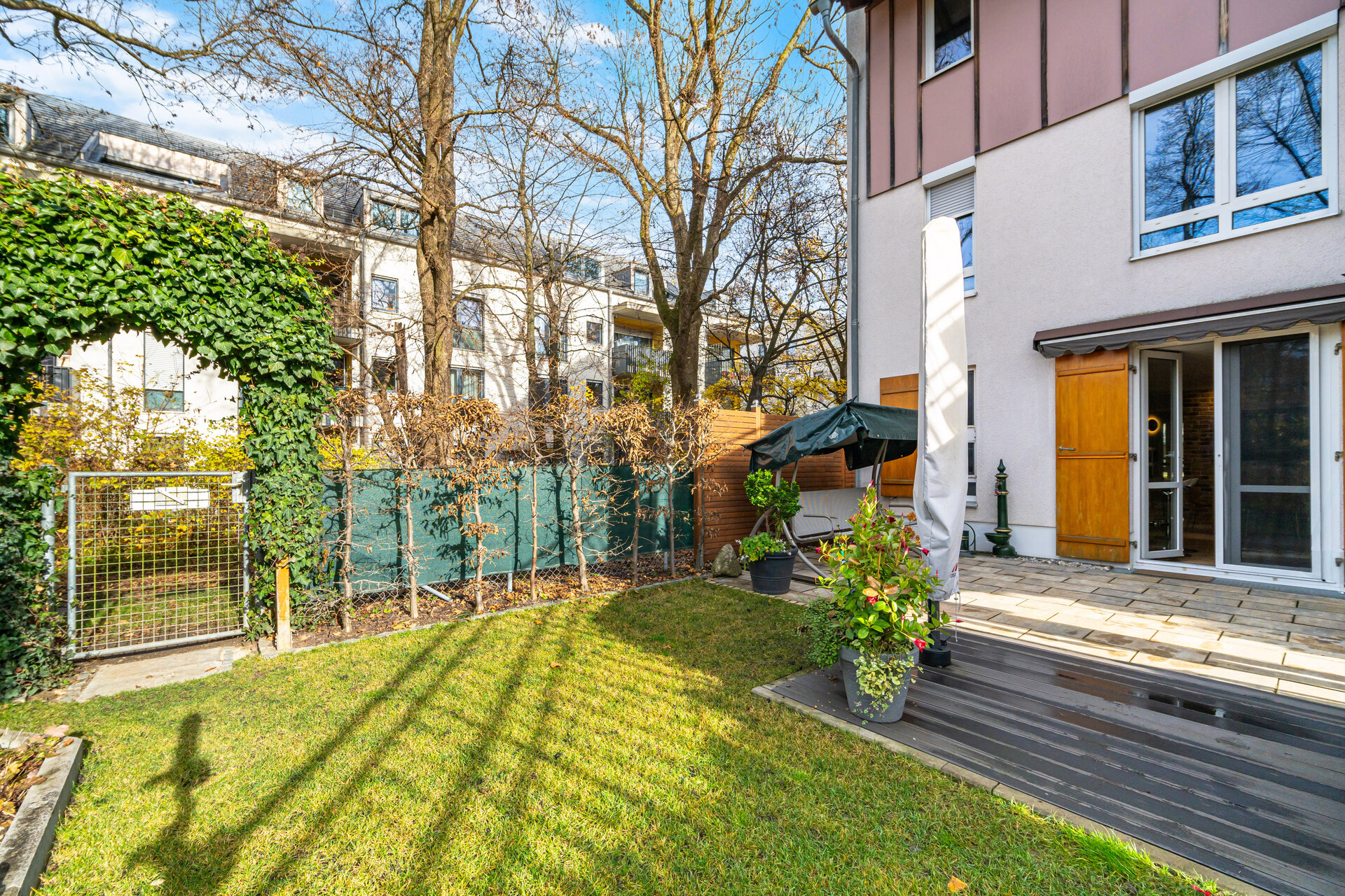 Vom Wohnbereich aus haben Sie direkten Zugang zur Terrasse mit angrenzendem Garten in Westausrichtung, der zum Entspannen, Gärtnern oder gemütlichem Beisammensein einlädt. Im Außenbereich befindet sich außerdem ein modernes Gartenhaus, das gemeinsam mit dem angrenzenden Eigentümer genutzt wird.
