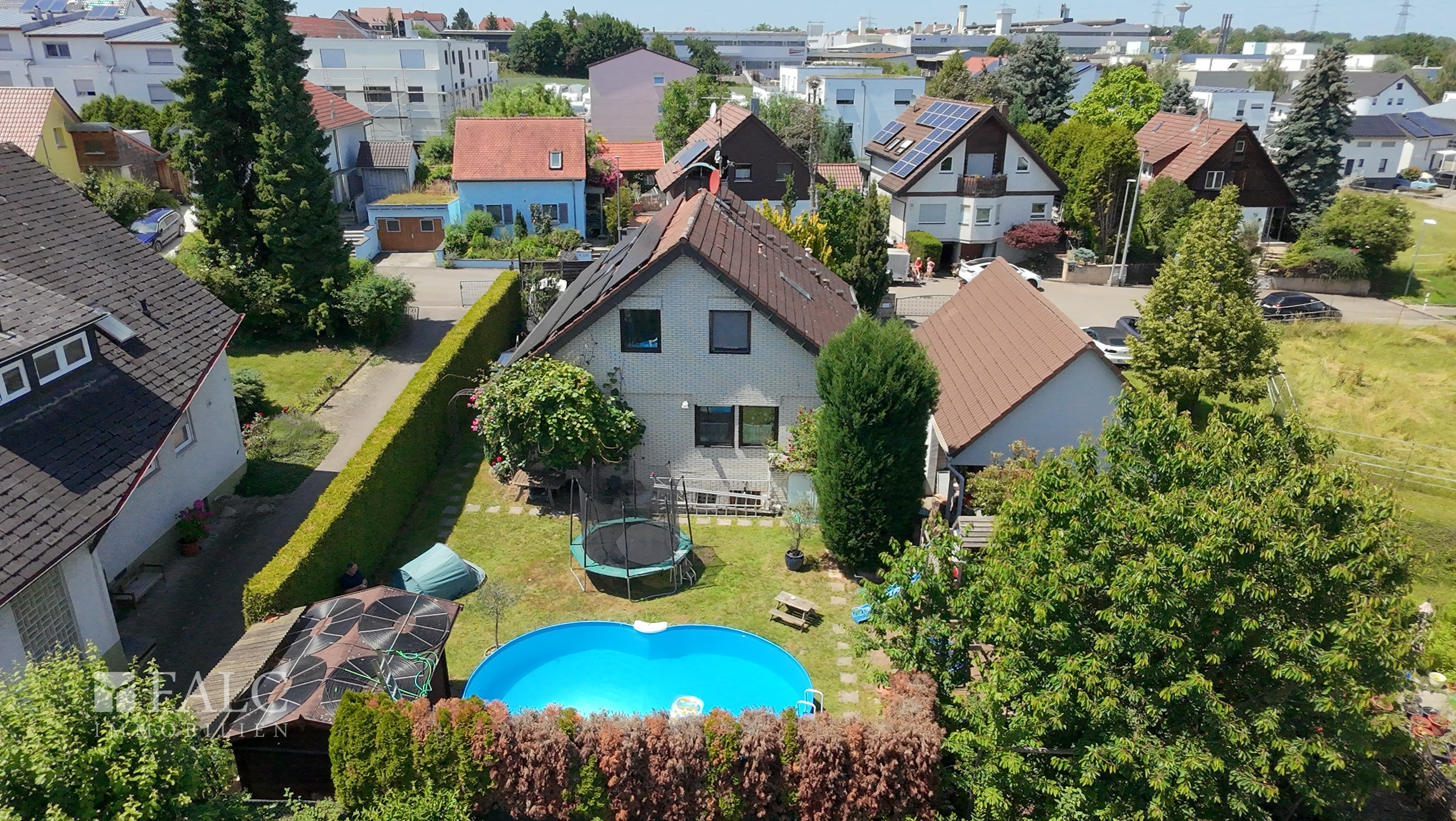 Zwei Etagen mit 3,5 Zimmern im Erdgeschoss und 2,5 Zimmern im Obergeschoss, 2 Küchen, 2 Bädern, ein voll unterkellerter Bereich mit Sauna, ein Freisitz mit sich anschließendem Garten mit Gardena-Bewässerungsanlage und beheizbarem Pool, eine große Doppelgarage mit Anbau und sechs Außenstellplätzen davor warten nun auf ihren neuen Eigentümer - und dieser könnten schon bald Sie sein!