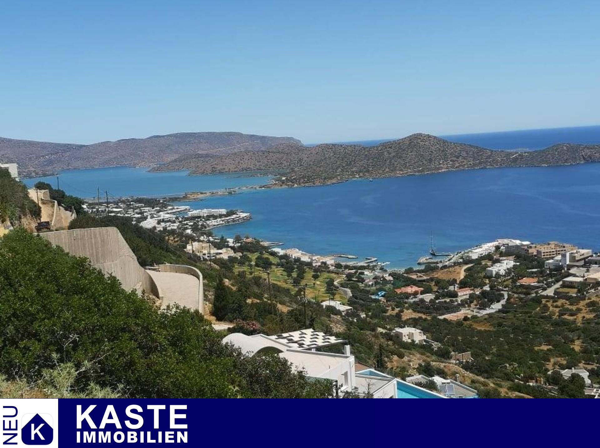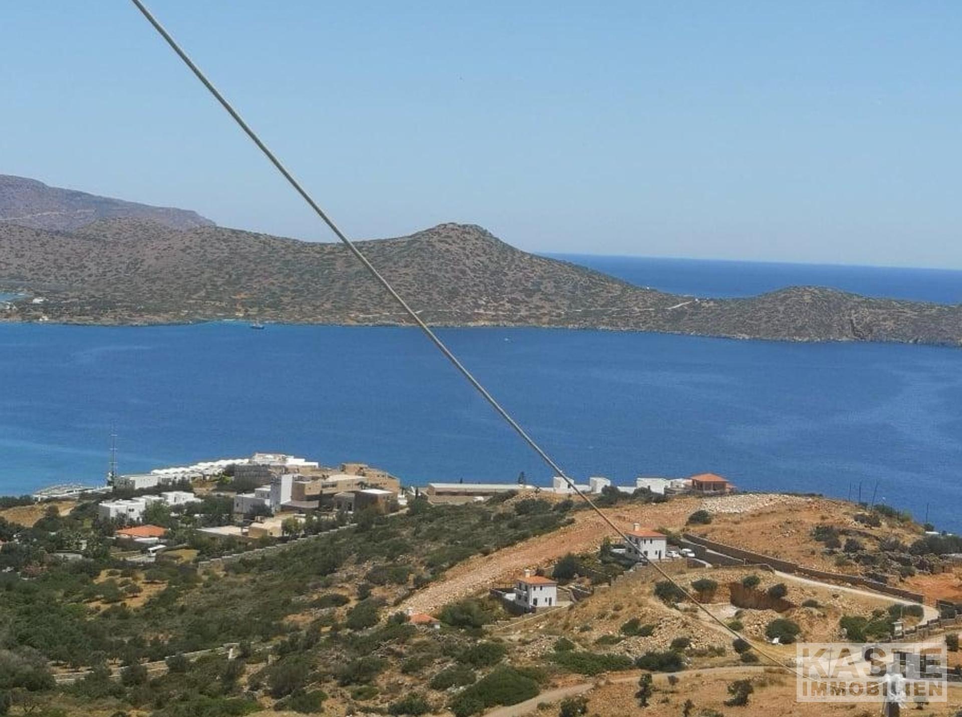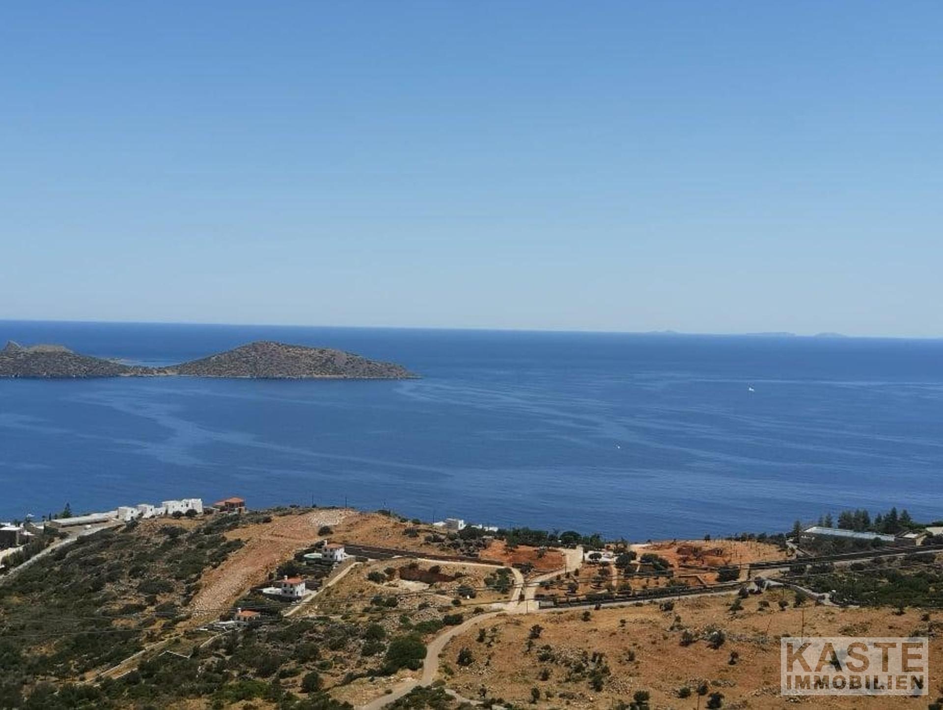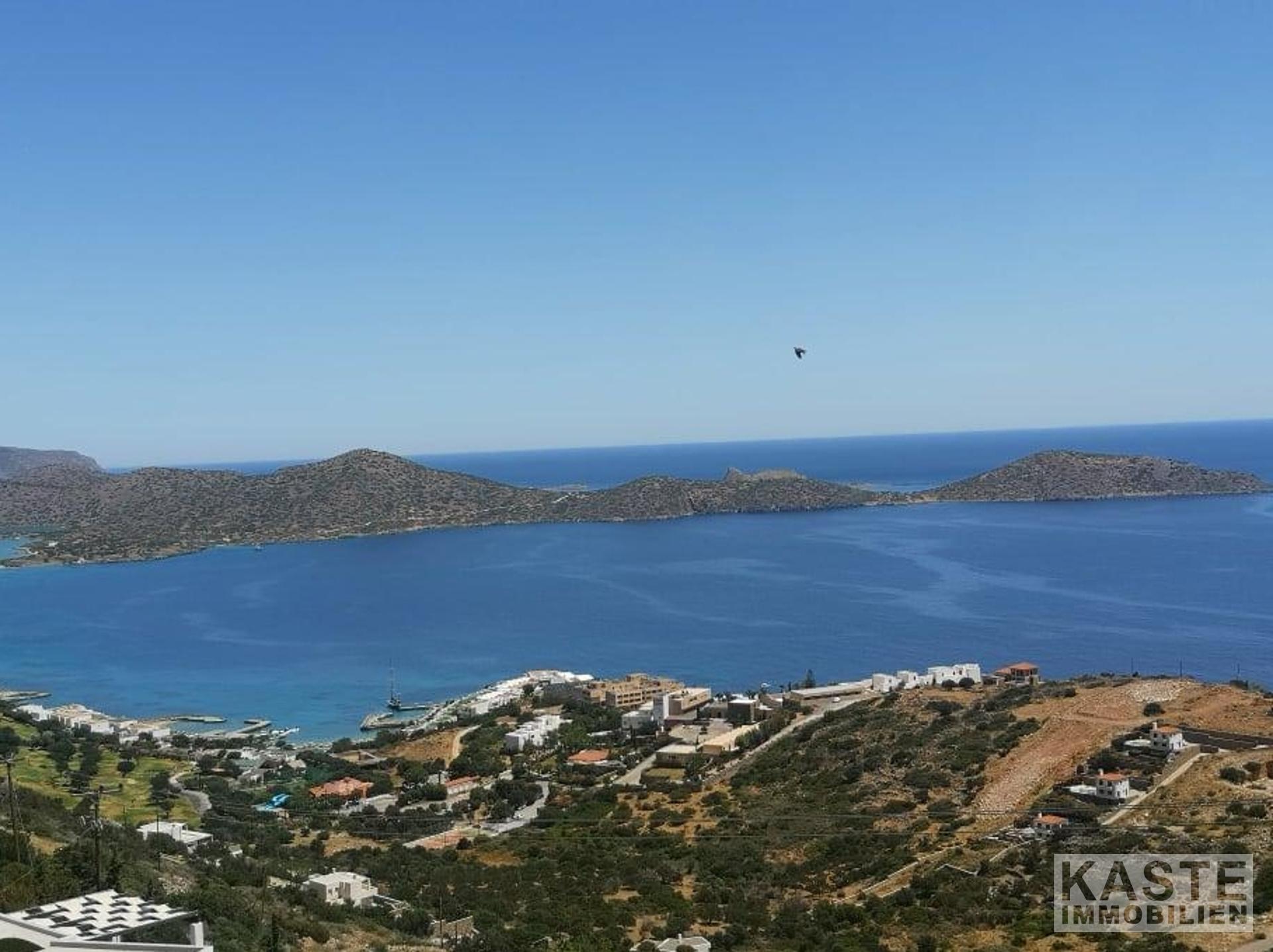 In seiner privilegierten, erhöhten Lage bietet das Grundstück einen atemberaubenden Panoramablick auf die Elounda-Bucht und die Mirabello-Bucht. Dieser erstreckt sich über 5/6-Sterne-Luxusresorts, die majestätischen Berge sowie faszinierende Sonnenaufgänge.