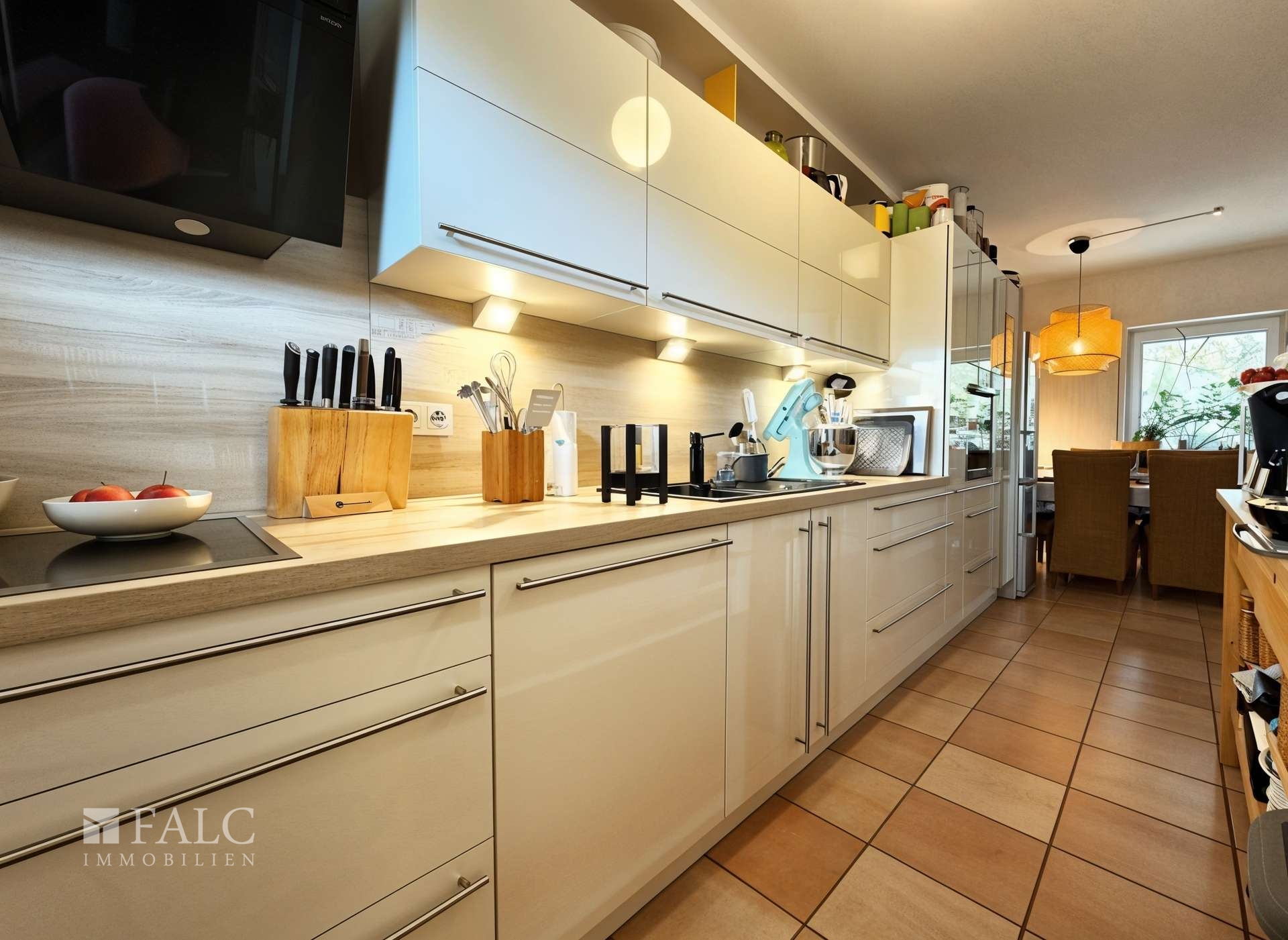 Die Einbauküche ist erst fünf Jahre alt und überzeugt mit funktionaler Ausstattung und zeitgemäßem Design. Für beste Arbeitsbedingungen im Home Office sorgt eine extra LAN-Box, die eine stabile und schnelle Internetverbindung in den Wohnräumen garantiert.