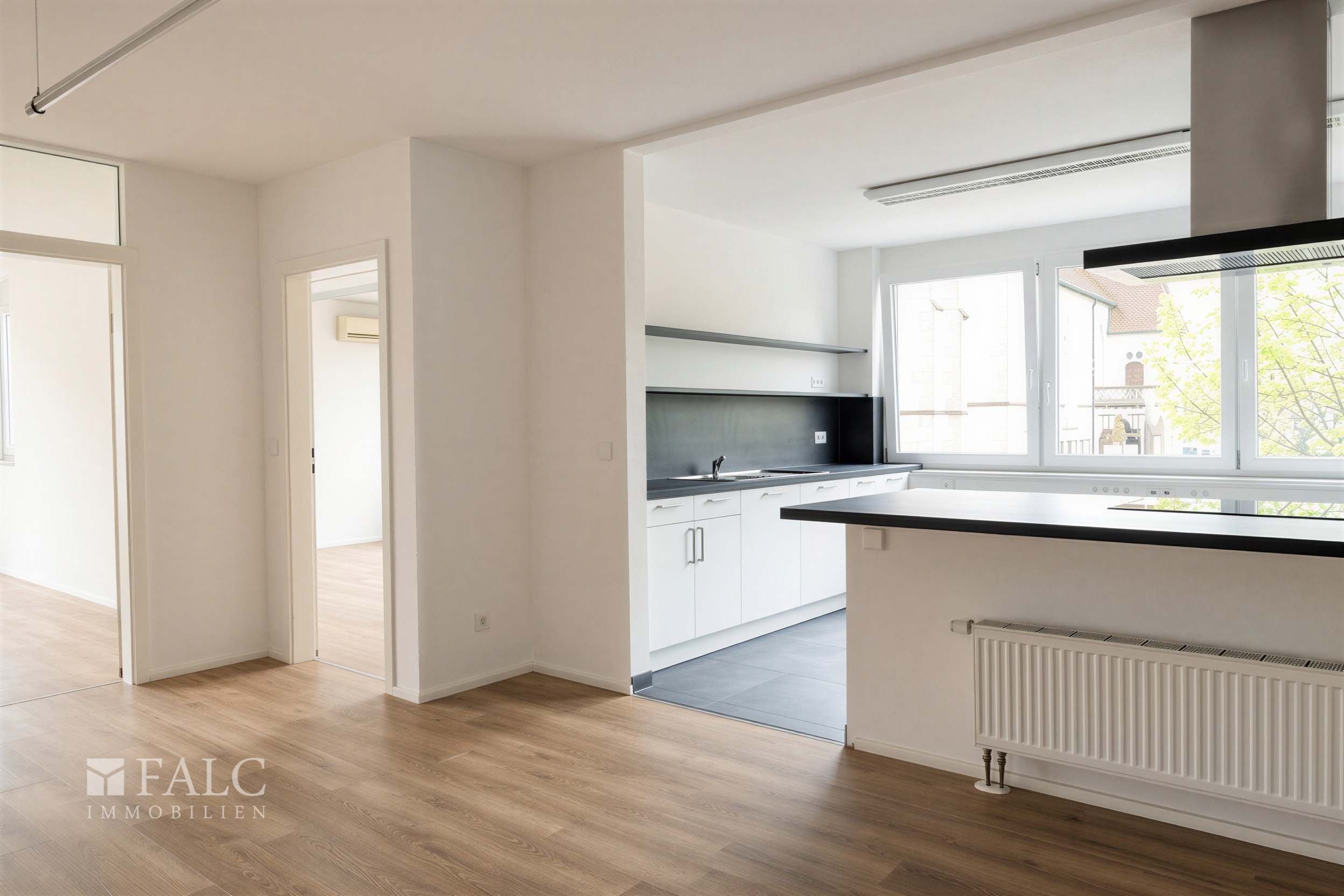 Die angebotene sehr große Wohnung wurde bis 2020 spezifisch als Anwalts-Kanzlei genutzt. Erst in 2021 wurde dann diese Wohnung mit Nr. 5 mit LRA BB Genehmigung umgenutzt und umgebaut, in den heutigen Zustand. Es entstand eine großzügige und moderne Wohneinheit, mit 149 m² Wohnfläche, verteilt auf 5 Zimmer, mit großer Wohnküche, 2 Bäder, einem Gäste WC, großer Diele und einem praktischen Abstellraum. Die gute PC Vernetzung ist noch heute sichtbar. Die gesamte Wohnung, mitsamt der neuen übergroßen Küche mit seinen Markengeräten, bietet außergewöhnlich viel Platz und das alles ungehindert auf nur einer Ebene. Ein weiteres Highlight, alle Wohnräume haben eine Klimaanlage. Auf Wunsch ist der Einbau einer Loggia auf der Südseite machbar. Das erlebbare Raumgefühl in allen Zimmern ist sehr großzügig. Der Zugang zur Wohnung ist bequem mit dem Aufzug möglich. Das Haus hat eine Gas-Brennwerttechnik-Zentralheizung und arbeitet vom Verbrauch her unverändert sehr sparsam. Eine GEG Pflicht zur Umrüstung auf regenerative Energie besteht nicht mehr! Die WEG entscheidet frei und ohne Zwang für sich, welcher Weg in der ferneren Zukunft der effizienteste ist. Der große Doppelcarport im Hof rundet das KP Angebot mit 650.000,-- ab.