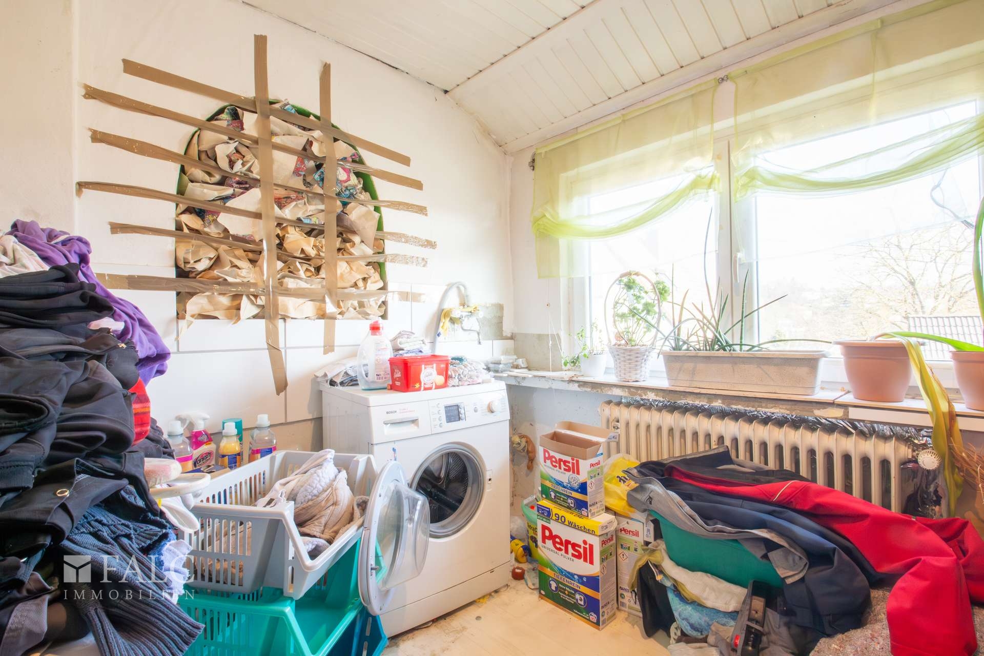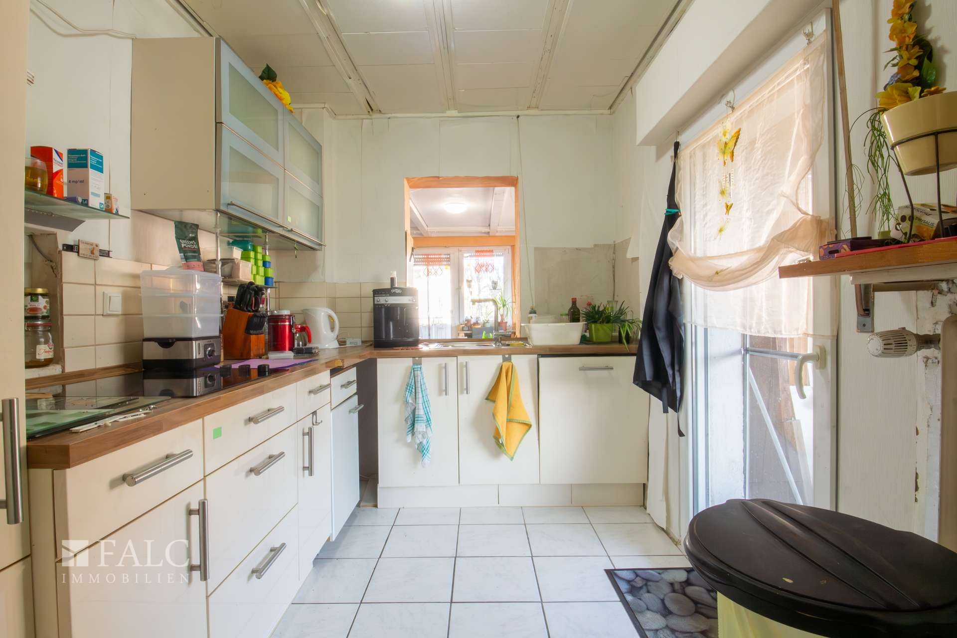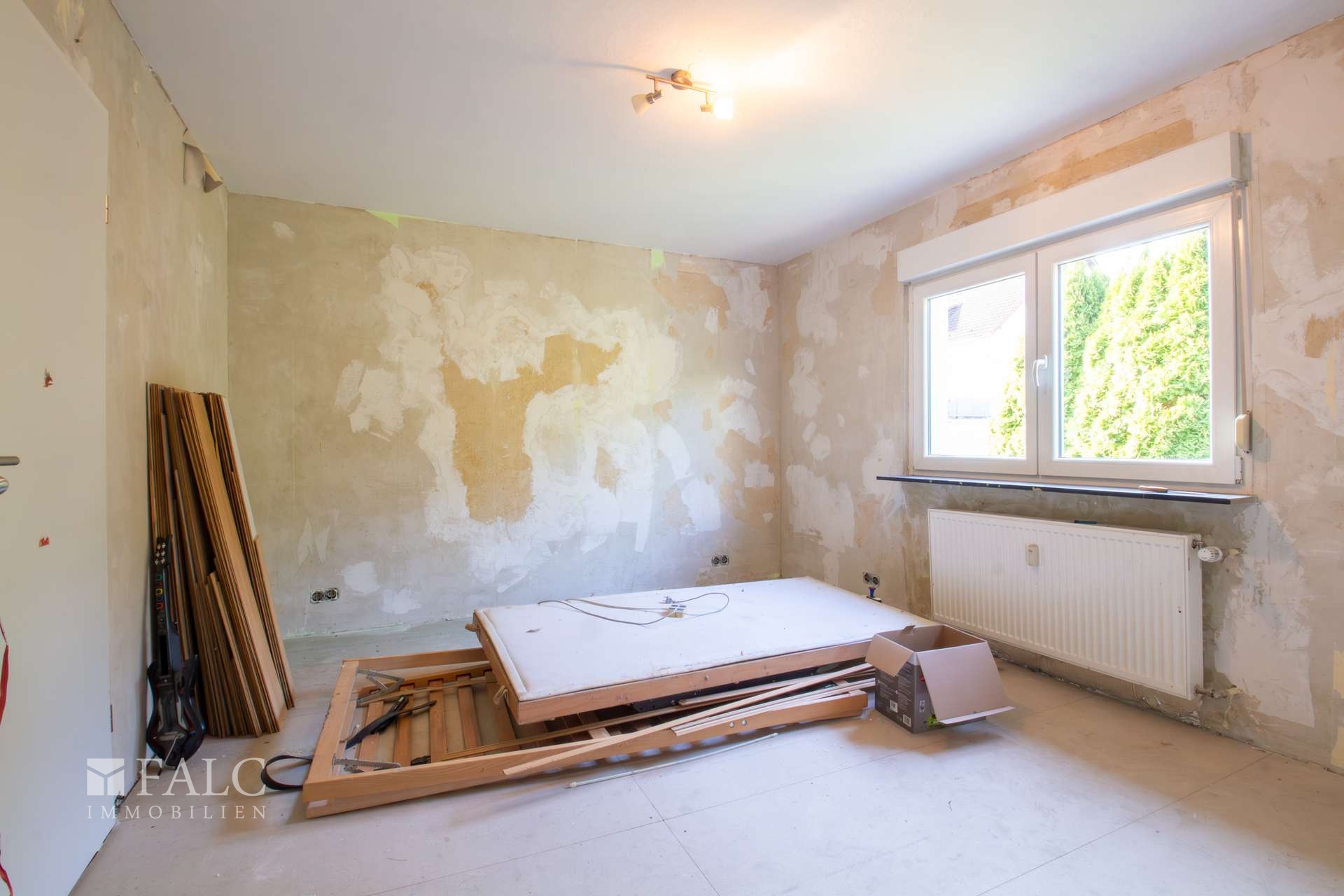 Im folgenden Text wird die Ausstattung des linken Wohnhauses näher beschrieben. In den Wohnräumen des Wohnhauses sind die Böden im Erd-, Ober- und Dachgeschoss mit Laminat und Fliesen ausgestattet. Die Böden in der Einliegerwohnung sind gefliest. Die zweifachverglasten Aluminiumfenster mit Kunststoffbeschichtung von Schüco sind aus dem Jahre 2008. Alle Fenster sind mit Rollläden ausgestattet. Die Terrassen- und Ausgangstüren sind ebenfalls aus Aluminium mit Kunststoffbeschichtung von Schüco. Als Innentüren wurden braune und weiße Holztüren verwendet. Die Verbindung vom Erd- ins Obergeschoss erfolgt über eine massive Treppe. Eine Holztreppe verbindet das Ober- und Dachgeschoss. Das Haus wird zusammen mit der anderen Haushälfte über ein gasbetriebenes Blockheizkraftwerk aus dem Jahre 2016 beheizt. In allen Wohnräumen sind Heizkörper vorhanden. Die Warmwassererzeugung erfolgt ebenfalls über das Blockheizkraftwerk. Das Badezimmer im Obergeschoss ist aus den 80’er Jahren. Es ist mit farbigen Wandfliesen halbhoch gefliest. Das Badezimmer im Kellergeschoss ist raumhoch mit weißen Fliesen gefliest. Im Dachgeschoss befindet sich ein Raum mit vorbereiteter Nutzung als Badezimmer. Die Sanitärausstattung ist derzeit noch nicht vorhanden. Das Dach des Wohnhauses ist mit Dachpfannen eingedeckt.