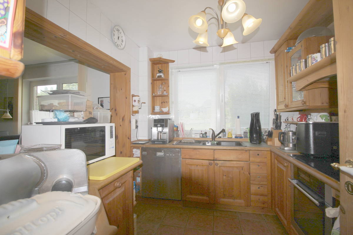 Die gehobene Ausstattung finden Sie in jedem Raum, von der gepflegten Einbauküche mit Pantry im Nebenhaus bis hin zum behaglichen Kamin des Haupthauses samt Wintergarten, der für gemütliche Abende sorgt. Dreh- und Angelpunkt des Haupthauses ist zweifellos das offene Wohn-/Esszimmer mit Zugang zum Wintergarten und der offen gestalteten Einbauküche im dänischen Landhausstil. Das freistehende Nebenhaus eignet sich auch als Vermietungsobjekt und kann noch weiter ausgebaut werden. Ein Ausbau (Remise, HWR und südliche Ausbauoption) mit Wohnflächenerweiterung allein im EG um rd. 100-150 m² gem. Baugrenzen ist möglich.
