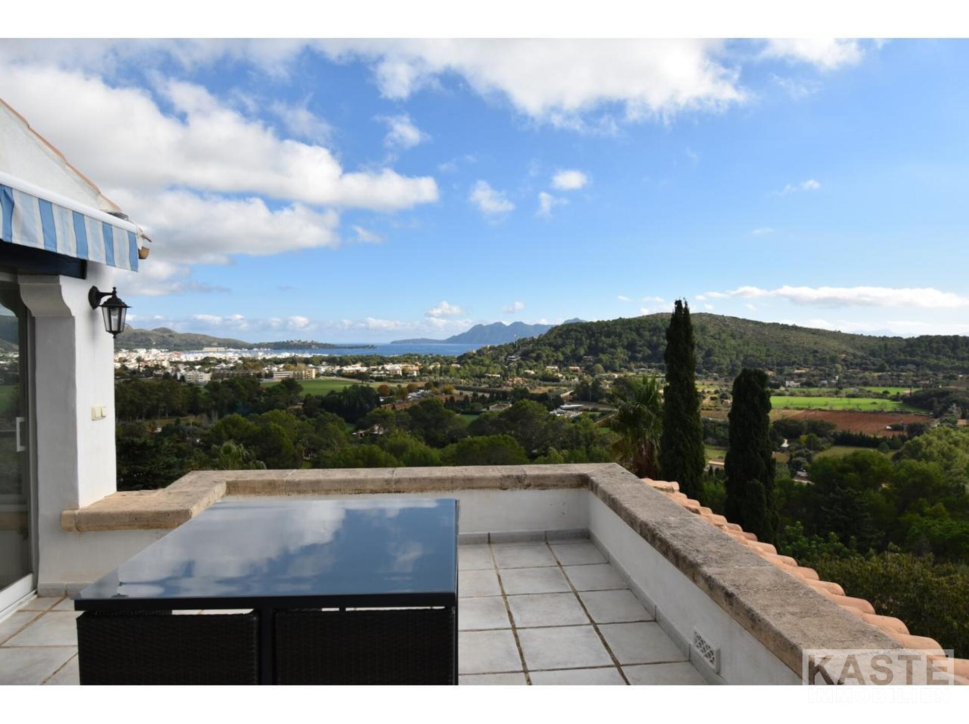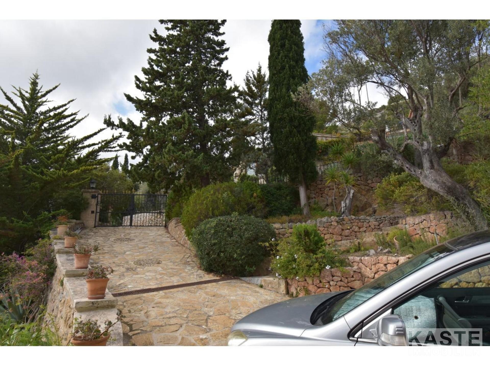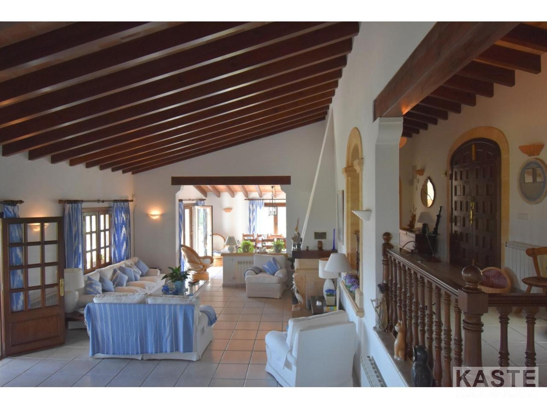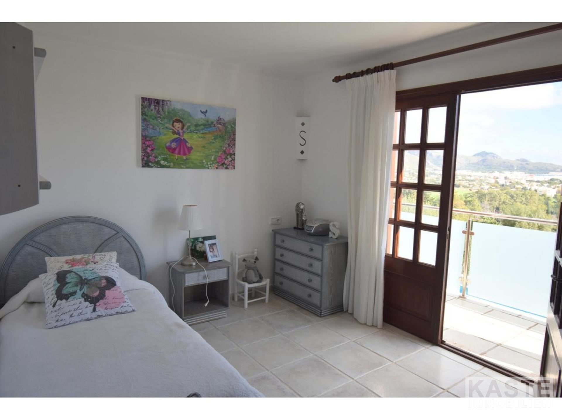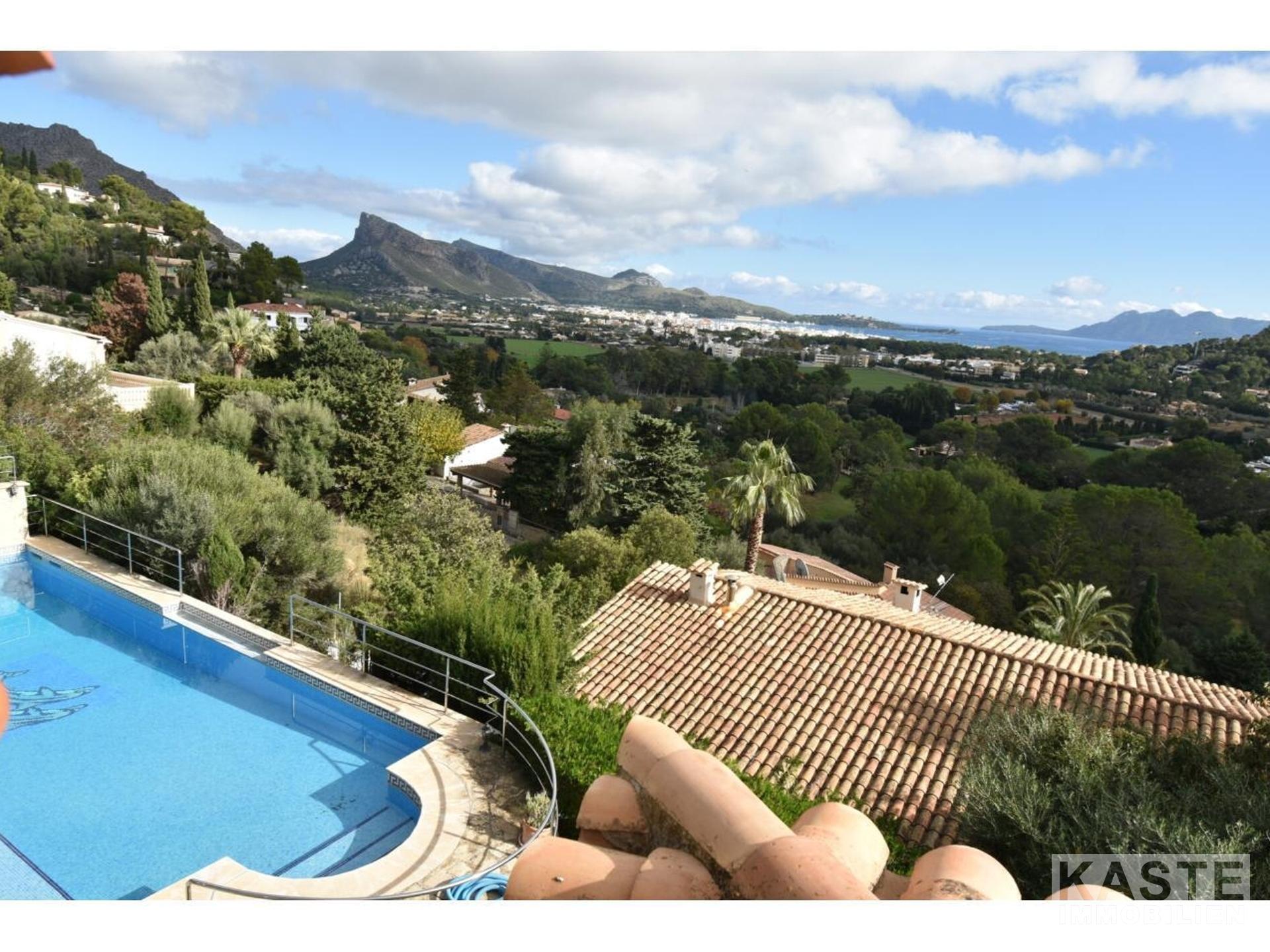 Diese Villa mit fantastischer Aussicht und viel Privatsphäre liegt in Pollença und verfügt über einen schönen Garten mit eigenem Pool und einer kleinen Außenküche. Das Haus ist auf einem Berg gebaut und hat viele Treppen. Es gibt einen großen Eingangsbereich sowie einen weiteren Eingang, der direkt in die Küche führt. Die obere Etage bietet zwei Essbereiche, ein großes Wohnzimmer in der Mitte und ein Schlafzimmer mit Bad en suite. Besonders schön ist der Wintergarten mit Blick auf die Berge und das Meer. 4 Schlafzimmer und 3 weitere Bäder befinden sich im Erdgeschoss. Zwei Schlafzimmer haben eine eigene Terrasse. Das Haus ist von Natur umgeben und perfekt für Familien geeignet. In nur 10 Minuten erreichen Sie den nächstgelegenen Strand und das Dorf Pollença.