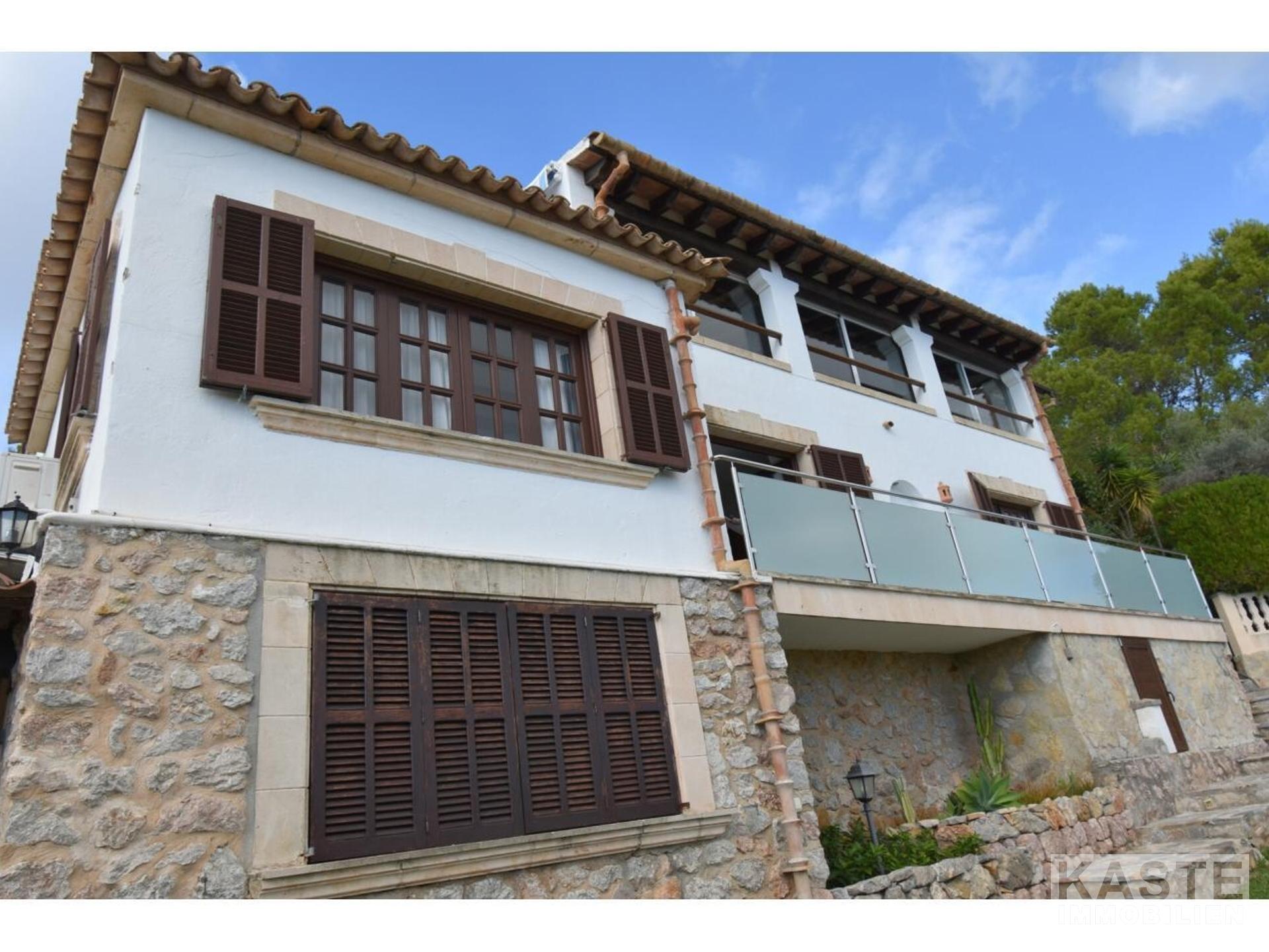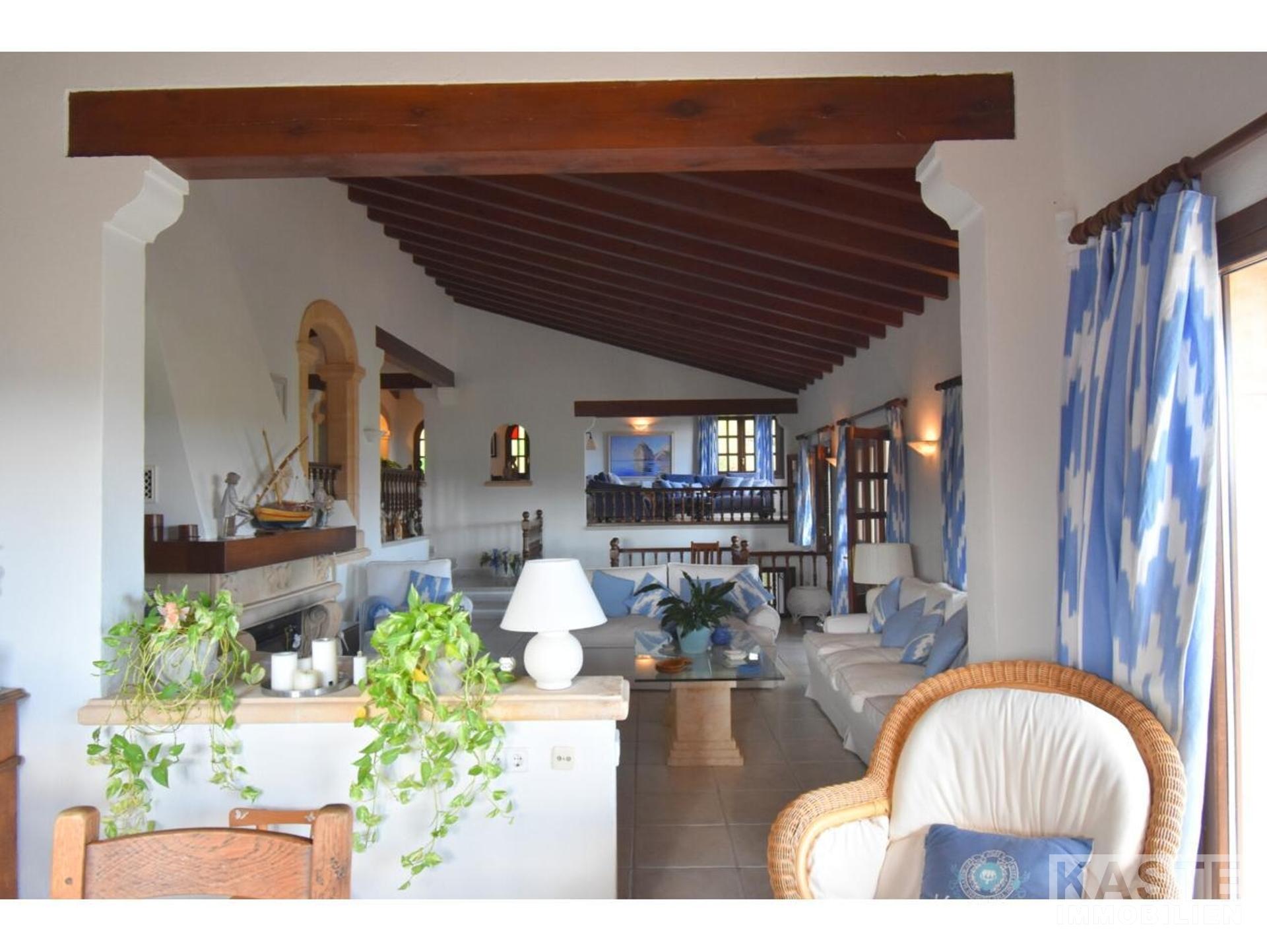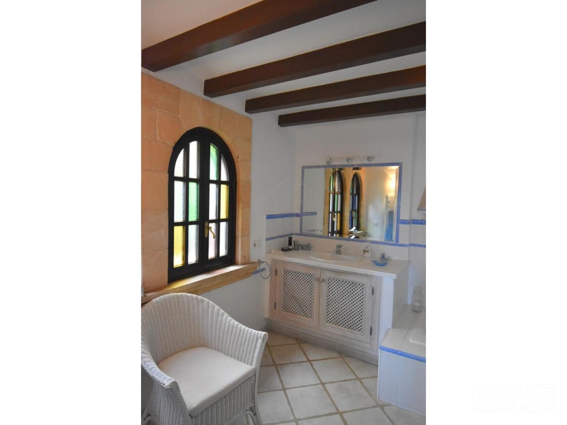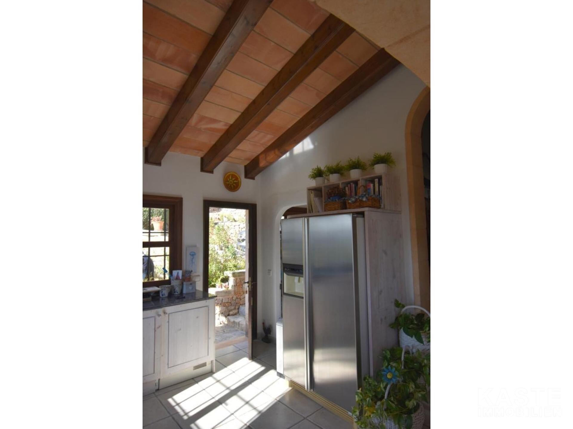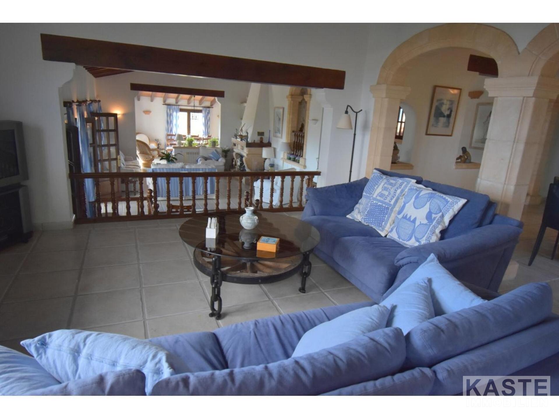 Diese Villa mit fantastischer Aussicht und viel Privatsphäre liegt in Pollença und verfügt über einen schönen Garten mit eigenem Pool und einer kleinen Außenküche. Das Haus ist auf einem Berg gebaut und hat viele Treppen. Es gibt einen großen Eingangsbereich sowie einen weiteren Eingang, der direkt in die Küche führt. Die obere Etage bietet zwei Essbereiche, ein großes Wohnzimmer in der Mitte und ein Schlafzimmer mit Bad en suite. Besonders schön ist der Wintergarten mit Blick auf die Berge und das Meer. 4 Schlafzimmer und 3 weitere Bäder befinden sich im Erdgeschoss. Zwei Schlafzimmer haben eine eigene Terrasse. Das Haus ist von Natur umgeben und perfekt für Familien geeignet. In nur 10 Minuten erreichen Sie den nächstgelegenen Strand und das Dorf Pollença.