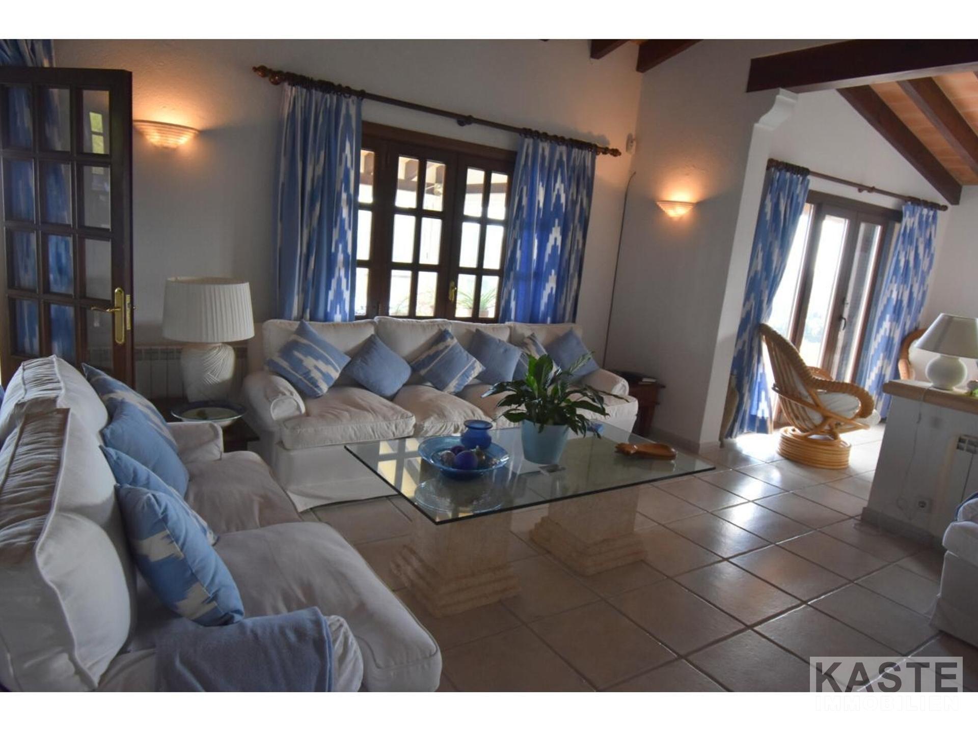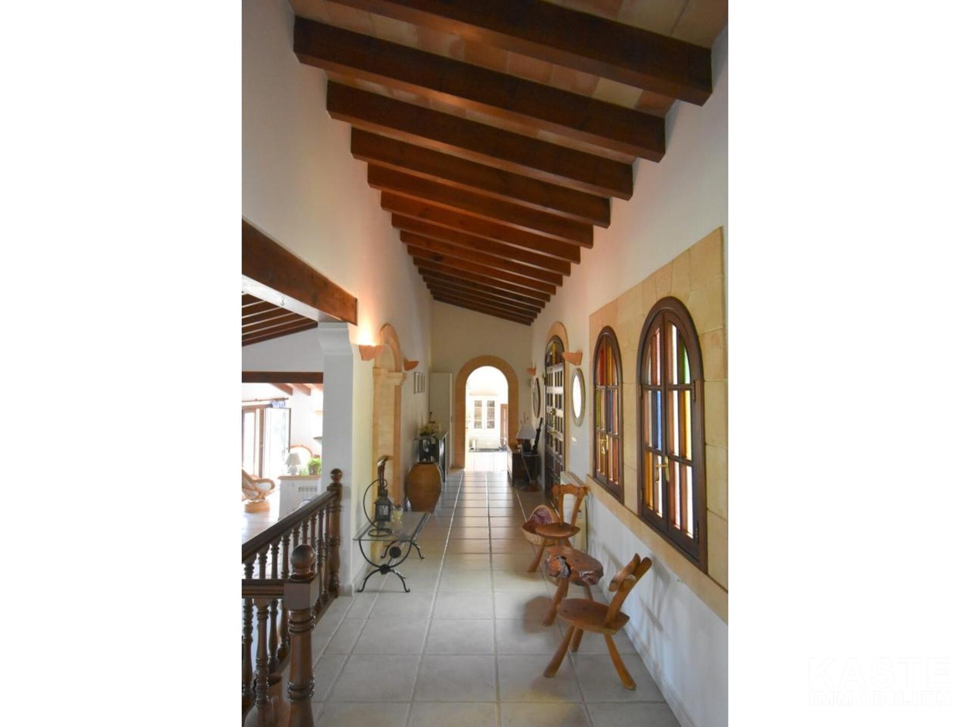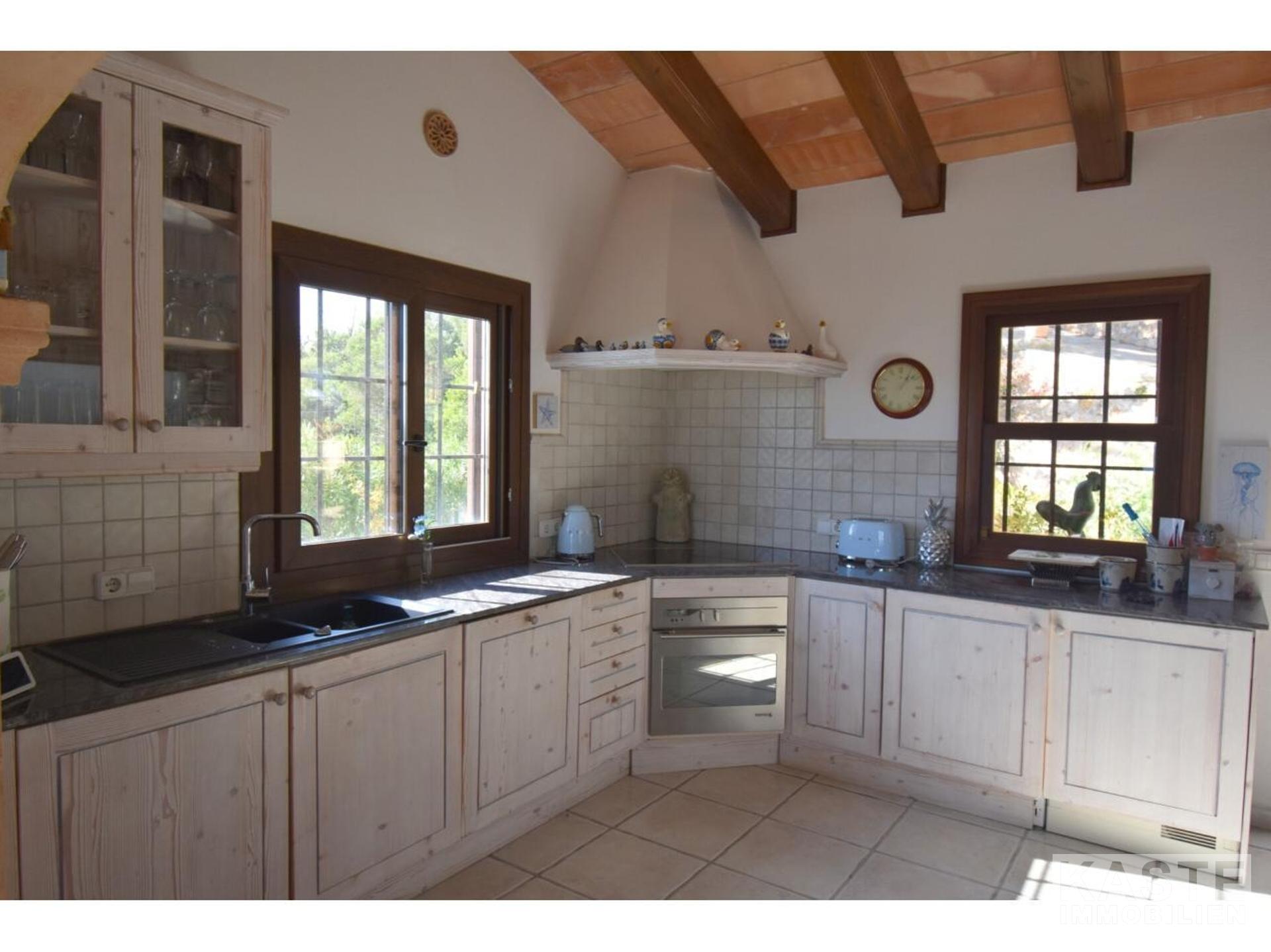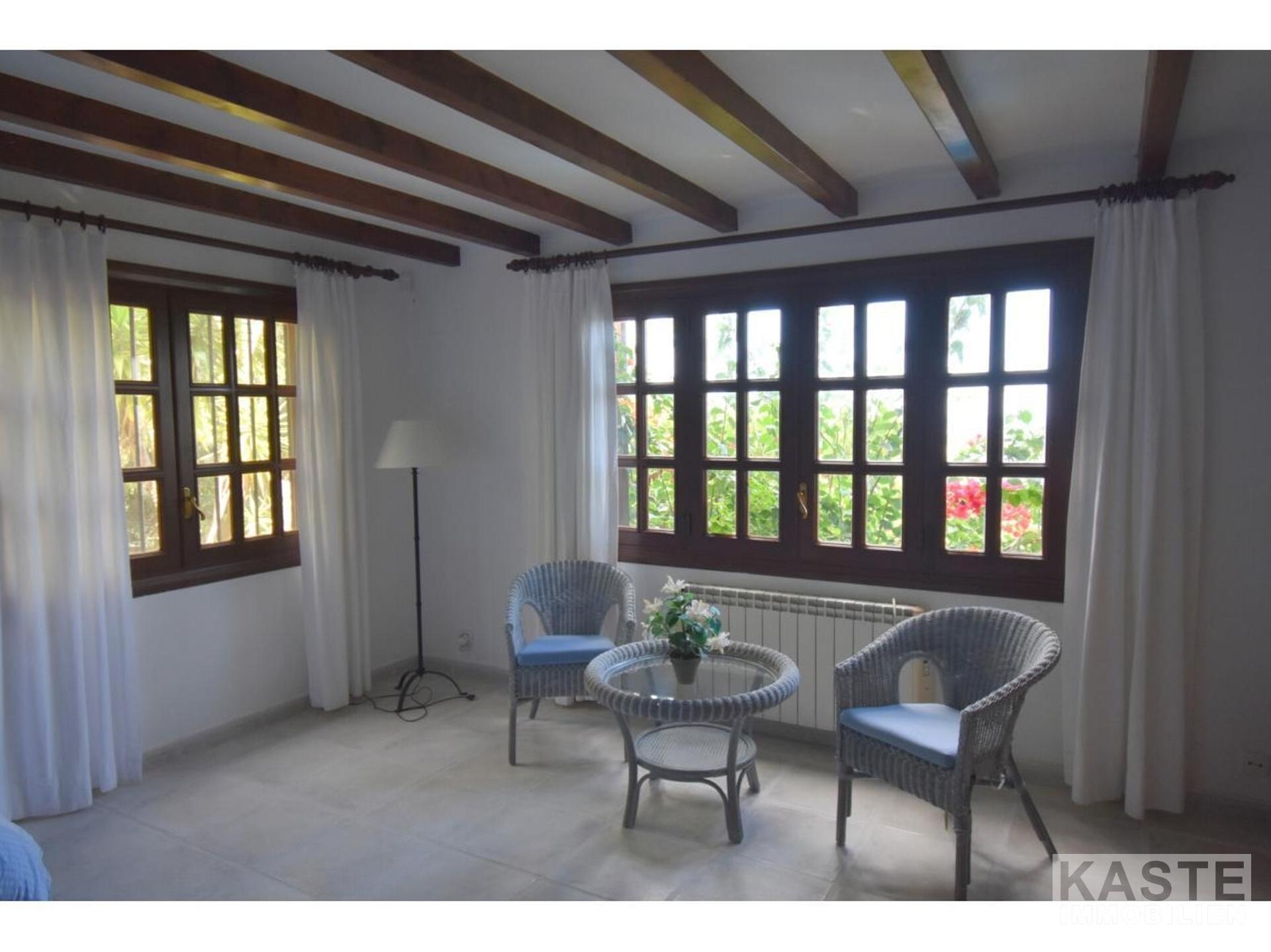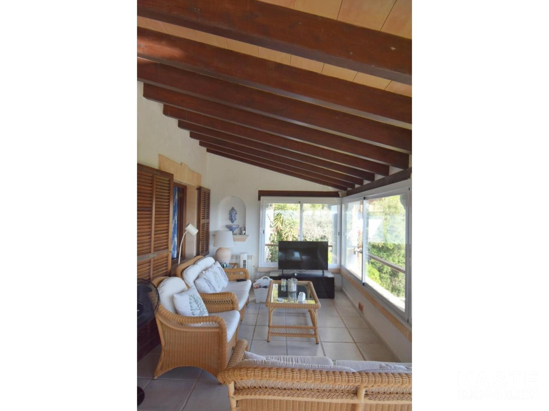Diese Villa mit fantastischer Aussicht und viel Privatsphäre liegt in Pollença und verfügt über einen schönen Garten mit eigenem Pool und einer kleinen Außenküche. Das Haus ist auf einem Berg gebaut und hat viele Treppen. Es gibt einen großen Eingangsbereich sowie einen weiteren Eingang, der direkt in die Küche führt. Die obere Etage bietet zwei Essbereiche, ein großes Wohnzimmer in der Mitte und ein Schlafzimmer mit Bad en suite. Besonders schön ist der Wintergarten mit Blick auf die Berge und das Meer. 4 Schlafzimmer und 3 weitere Bäder befinden sich im Erdgeschoss. Zwei Schlafzimmer haben eine eigene Terrasse. Das Haus ist von Natur umgeben und perfekt für Familien geeignet. In nur 10 Minuten erreichen Sie den nächstgelegenen Strand und das Dorf Pollença.