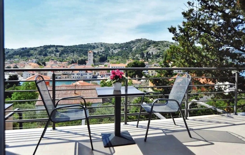 Das Nebengebäude besteht aus einem Studio-Apartment. Besonders von der Terrasse des Hauses bietet sich ein wunderschöner Blick auf den Ort und das Meer.