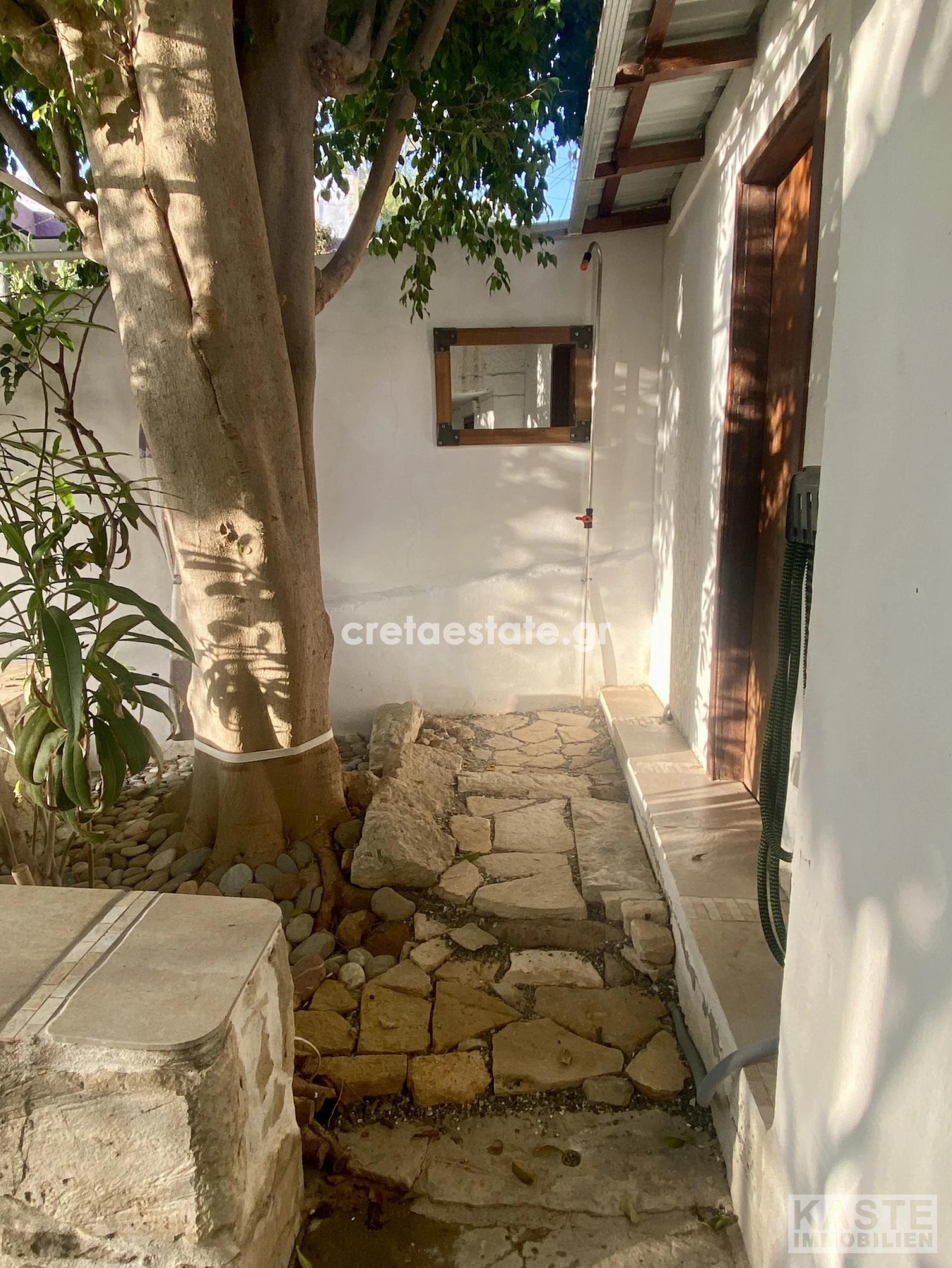 Das Grundstück ist von einer wilden und unberührten Landschaft umgeben, die von mediterraner Vegetation geprägt ist. Auf dem Grundstück selbst wachsen einige Olivenbäume und Zypressen, die dem Areal einen charmanten Charakter verleihen.