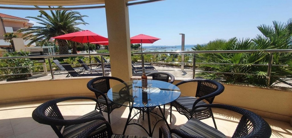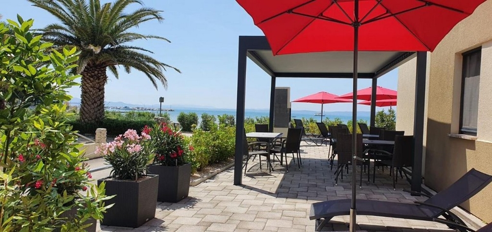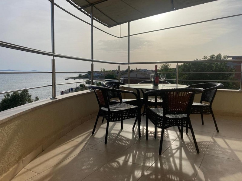 Dieses Angebot umfasst ein ansprechendes Apartmenthaus mit drei Wohneinheiten in herrlicher Lage in der ersten Reihe zum Meer in Privlaka, Region Zadar.