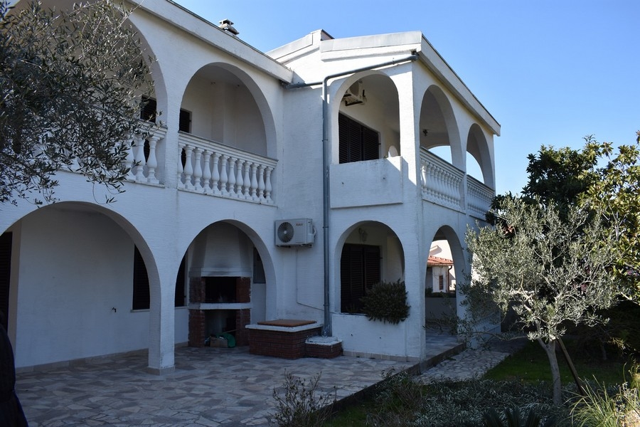 Im Außenbereich befinden sich Stellplätze und eine Garage. Von den oberen Terrasse genießt man einen schönen Blick auf die Umgebung und das Meer.