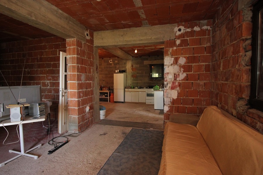 Dieses Haus befindet sich auf einem ca. 576 m² großen Grundstück und es bietet eine Gesamtfläche von ca. 300 m² auf drei Etagen (je eine Wohnung / Etage). Im Erdgeschoss befindet sich eine fertiggestellte Wohnung. Die anderen beiden Etagen befinden sich im Rohbau-STatus.