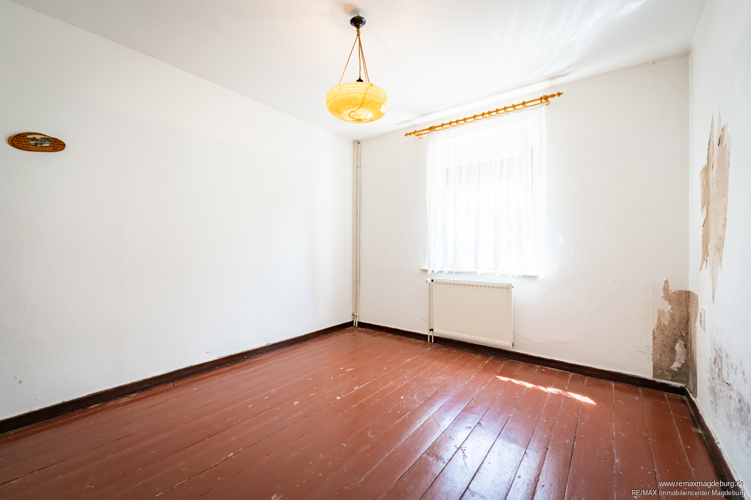 Ein kleiner Rundgang durch das Haus: Sie gelangen zunächst in einen kleinen Windfang, der nicht nur für Witterungsschutz sorgt, sondern auch als Garderobenbereich dient. Von hier aus betreten Sie den zentralen Flur, der die einzelnen Räume im Erdgeschoss erschließt. Links vom Flur befindet sich die helle Küche mit einem klassischen Schnitt – perfekt für das gemeinsame Familienessen. Rechts liegt das Badezimmer, das das Potenzial für individuelle Modernisierung lässt. Geradeaus öffnet sich der Flur zum großzügigen Wohnzimmer, das sich hervorragend als zentraler Aufenthaltsraum eignet. Von hier aus gelangen Sie direkt in das Schlafzimmer, das ruhig zum hinteren Teil des Hauses liegt.