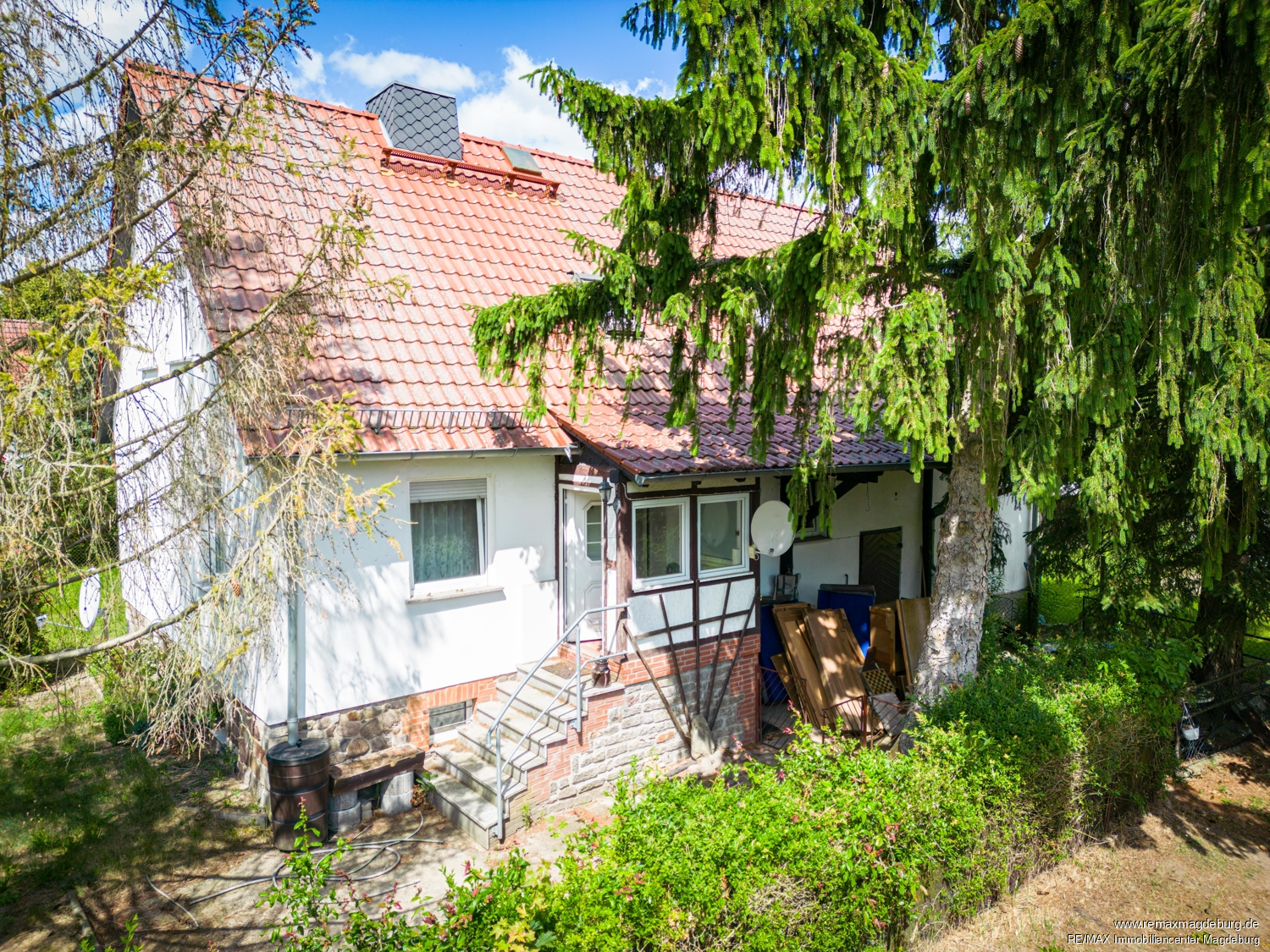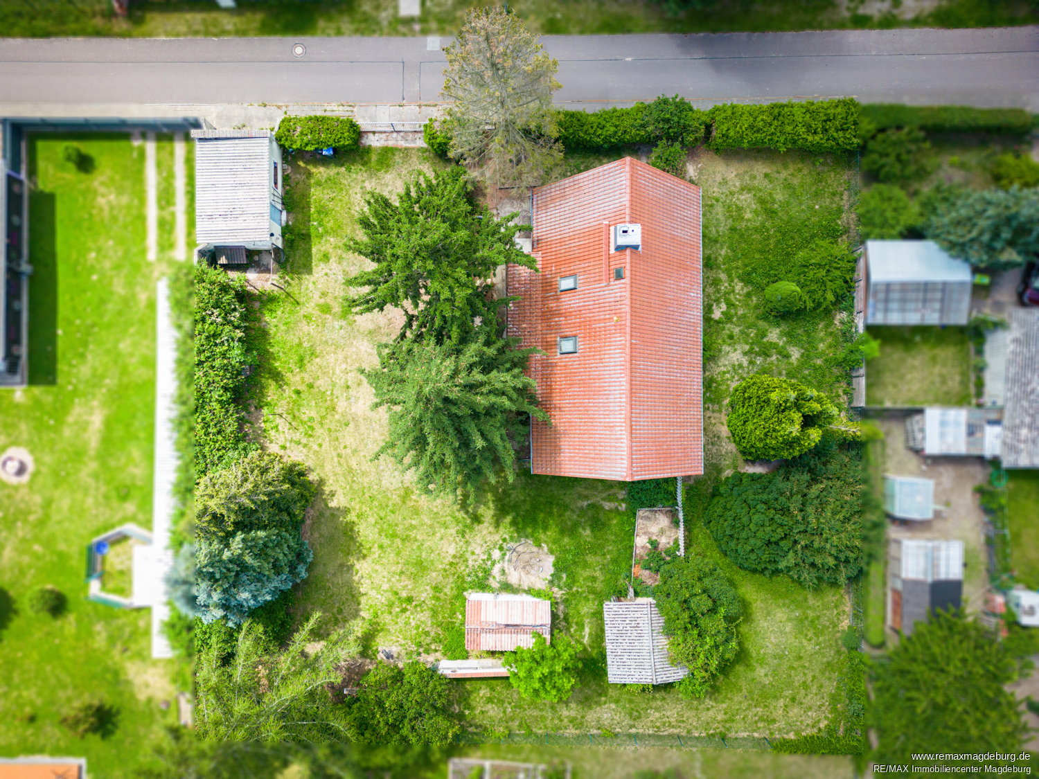 Auf dem 1.370m² großen Grundstück sind weitere Nebengelasse, sowie eine Garage vorhanden. Das nach hinten weitläufige Grundstück bietet allerlei Möglichkeiten für Hobby und Gärtnerei. Hier sind Ihren Ideen kaum Grenzen gesetzt. Die Dächer von Schuppen und Garage sind mit asbesthaltigen Platten gedeckt. Ein fachgerechter Rückbau und eine anschließende Neueindeckung sind hier erforderlich.