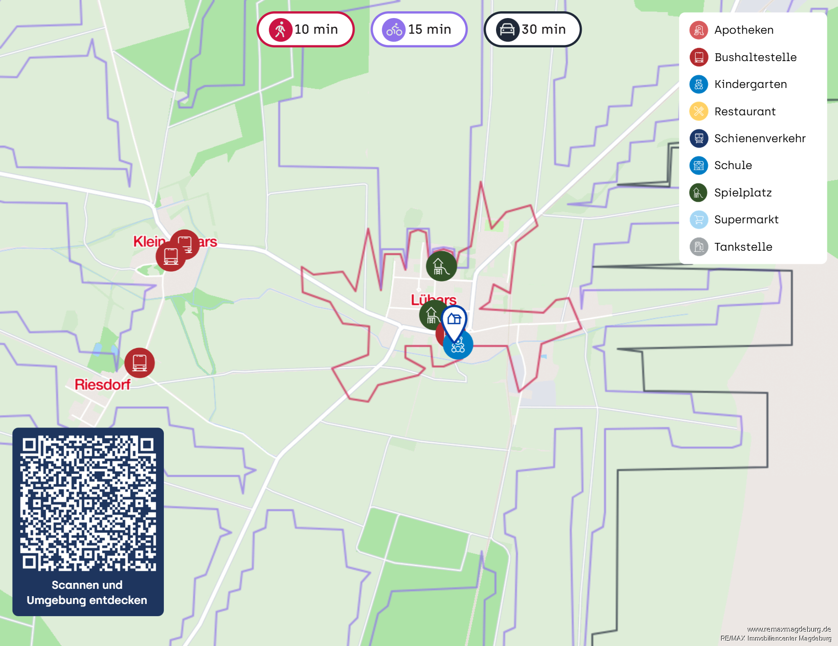 Die Immobilie befindet sich in ruhiger, ländlicher Lage im Ortsteil Lübars der Stadt Möckern, im Landkreis Jerichower Land in Sachsen-Anhalt. Lübars ist eine kleine, beschauliche Ortschaft, die vor allem durch ihre naturnahe Umgebung, landwirtschaftlich geprägte Struktur und die gute Anbindung an die Stadt Möckern besticht.