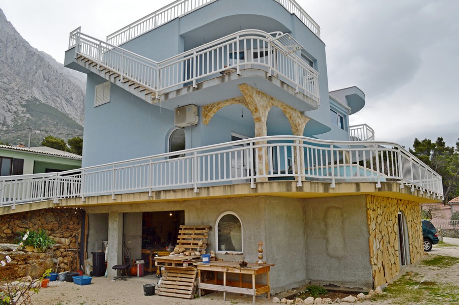 Zum Verkauf steht ein im Jahr 2016 erbautes Haus in bester Lage, ideal für all jene, die eine herrliche Aussicht, Ruhe und die Nähe zu allen wichtigen Einrichtungen schätzen. Das Haus befindet sich nur 2,5 km von Baška Voda und 7,5 km von Makarska entfernt. Die Autobahn A1 ist in 8,5 km erreichbar, und der nächstgelegene Strand sowie Supermarkt sind 2,5 km entfernt.