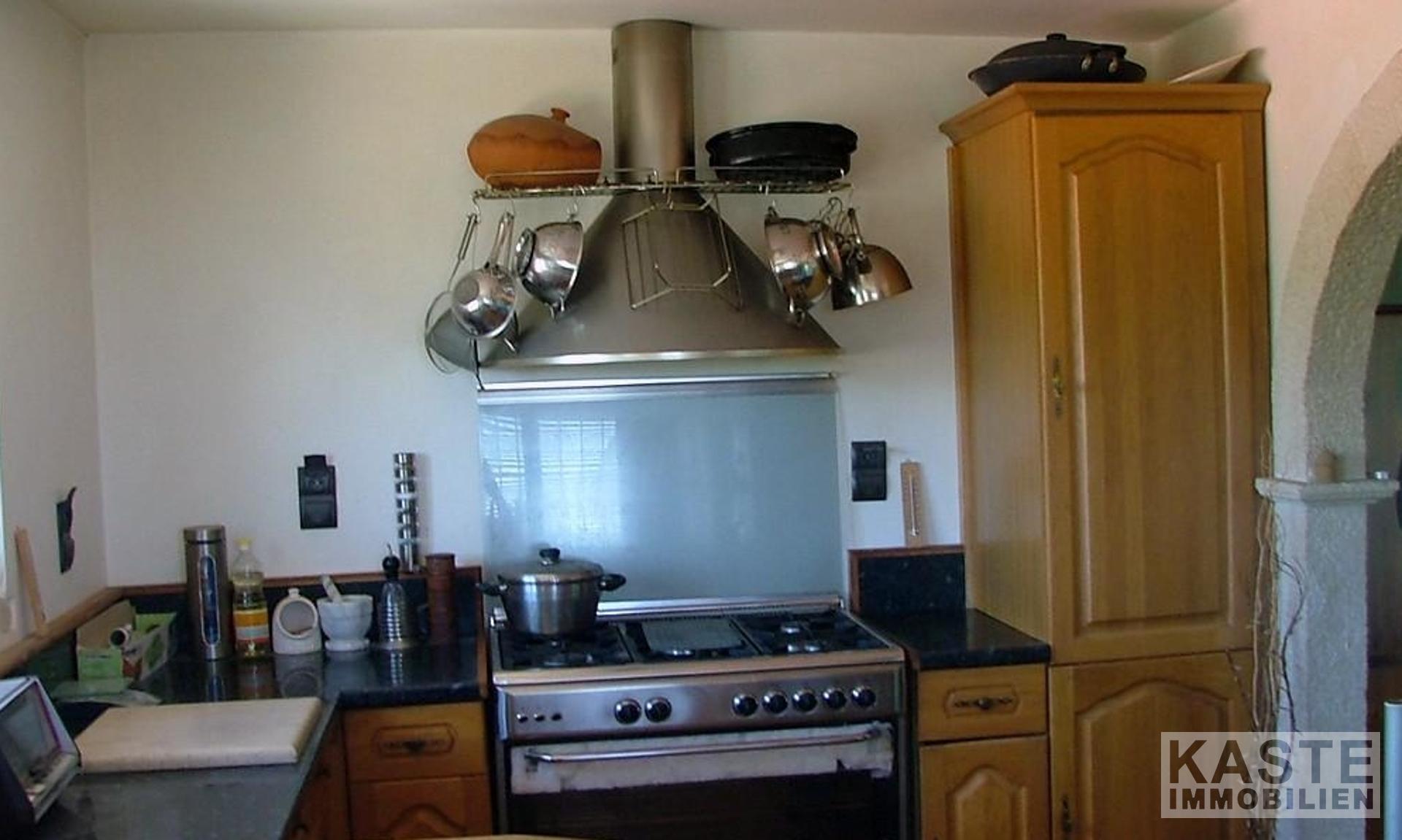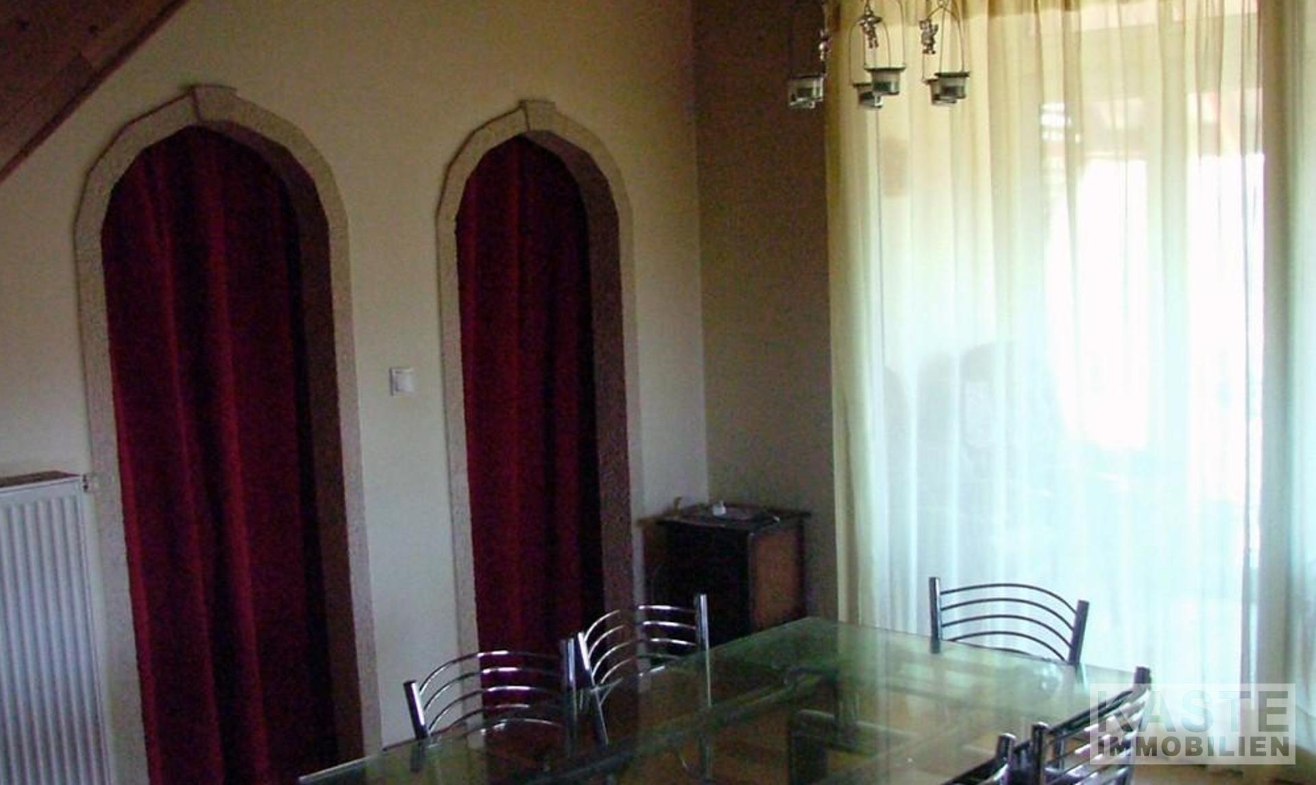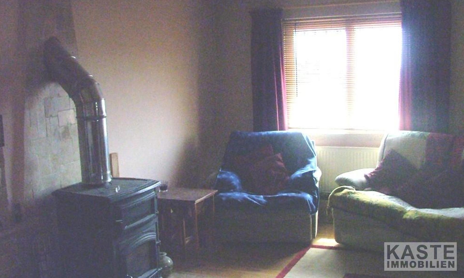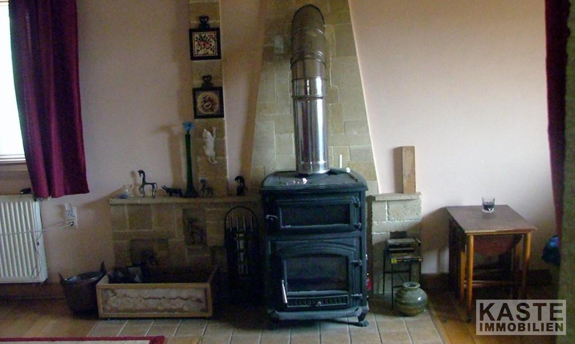 Die Wohnung im ersten Stock besteht aus 2 Schlafzimmern, einem Badezimmer mit Granit- und Marmorverkleidung, einem geräumigen Wohnzimmer mit Holzofen, einem Sonnenzimmer, einer Galerie, die derzeit als Büro genutzt wird und einer Küche mit voll ausgestatteten Eichenmöbeln. Das Erdgeschoss ist durchgehend mit Eichenparkett ausgestattet und die Wohnung hat eine Öl-Zentralheizung.