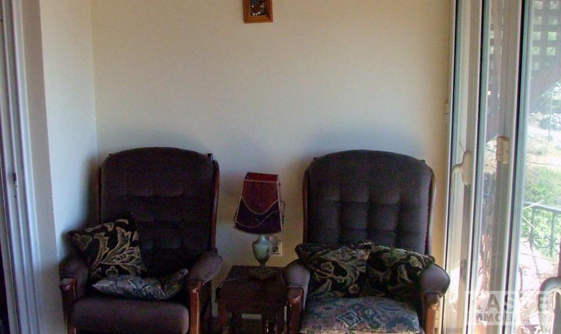 Die Wohnung im Erdgeschoss besteht aus 2 Schlafzimmern, einem Wohnzimmer mit Fenstertüren, die auf eine Veranda führen, einer Küche/Esszimmer mit hochwertigen Eichenschränken und einem Badezimmer mit Granitboden und Marmorwänden. Auch diese Wohnung hat Eichenböden im ganzen Haus und eine Öl-Zentralheizung.