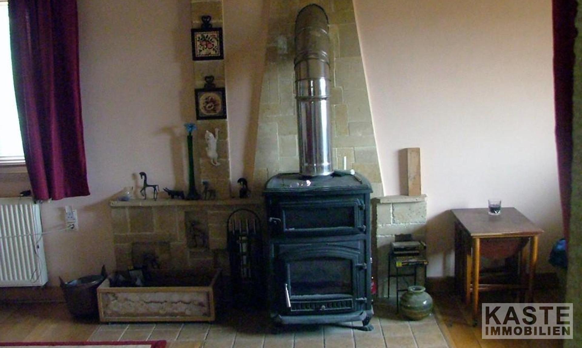 Die Wohnung im ersten Stock besteht aus 2 Schlafzimmern, einem Badezimmer mit Granit- und Marmorverkleidung, einem geräumigen Wohnzimmer mit Holzofen, einem Sonnenzimmer, einer Galerie, die derzeit als Büro genutzt wird und einer Küche mit voll ausgestatteten Eichenmöbeln. Das Erdgeschoss ist durchgehend mit Eichenparkett ausgestattet und die Wohnung hat eine Öl-Zentralheizung.